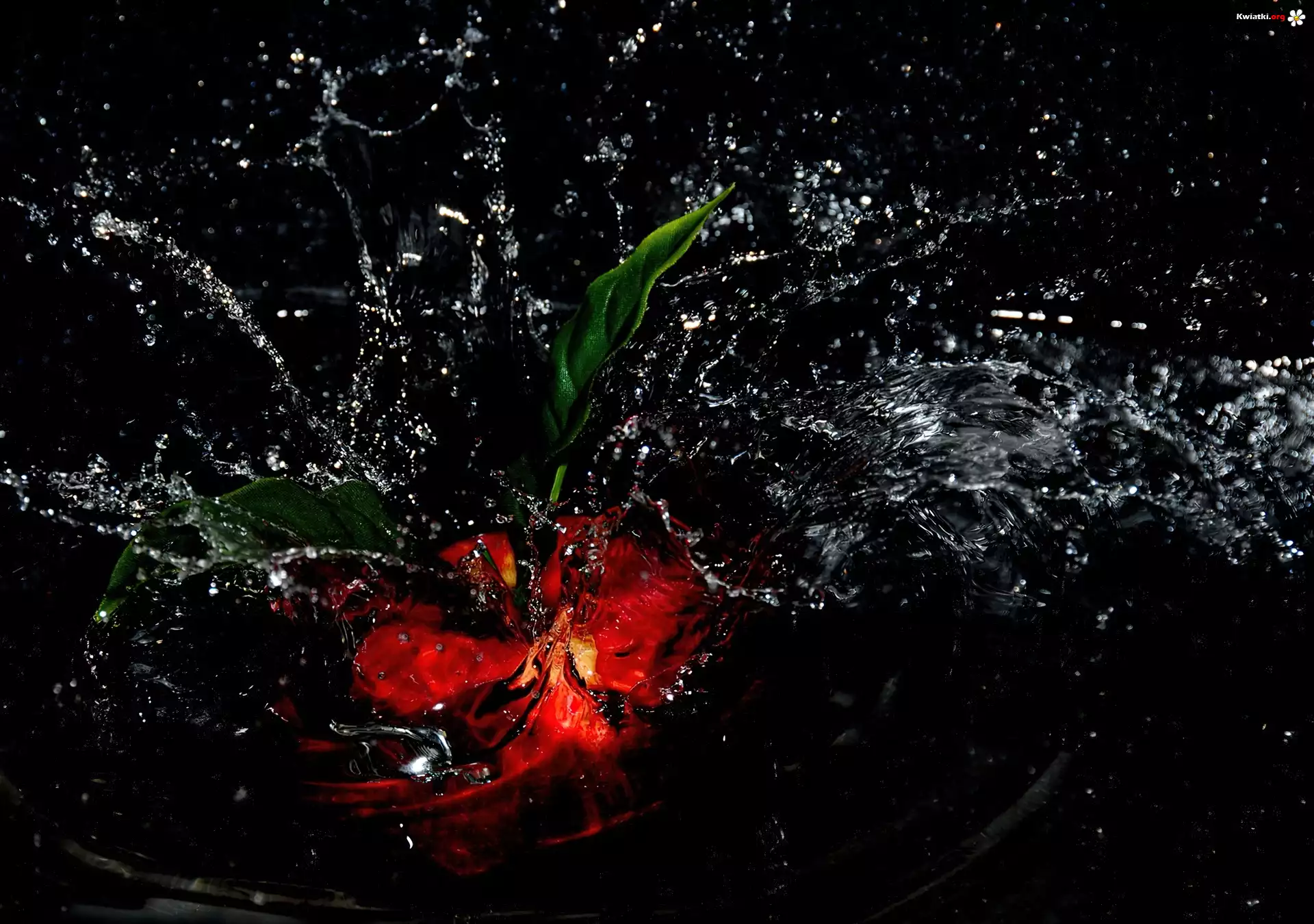 Kwiat Czerwony, Kwiat, Listki, Rzucone, Do, Wody