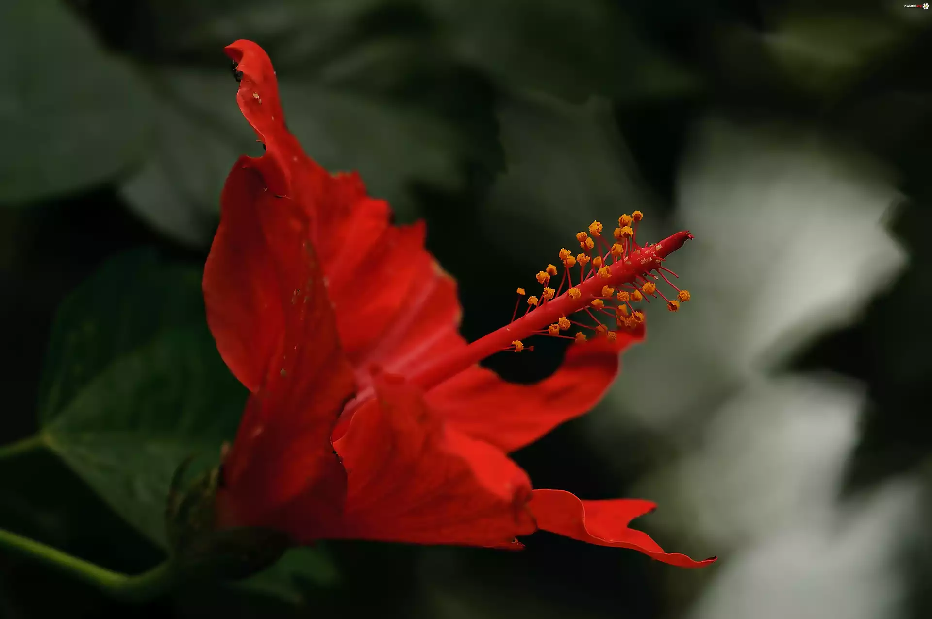 Czerwony, Kwiat, Hibiskusa, Makro - Zdjęcia