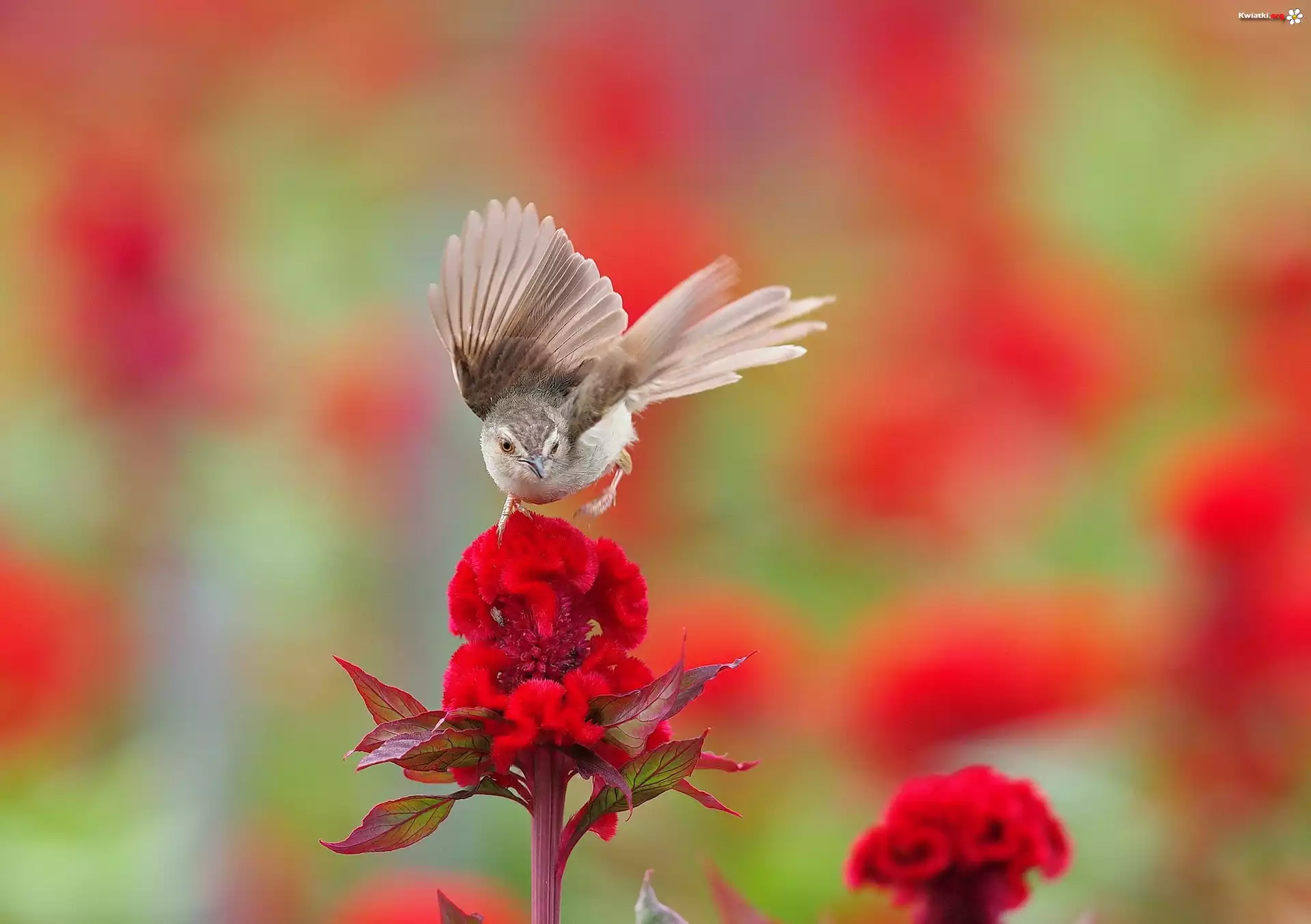 Ptak, Czerwony, Kwiat - Zdjęcia