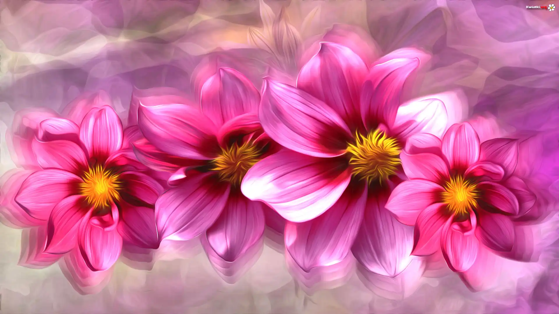 Cztery, Różowe, Kwiaty, Grafika 2D - Zdjęcia