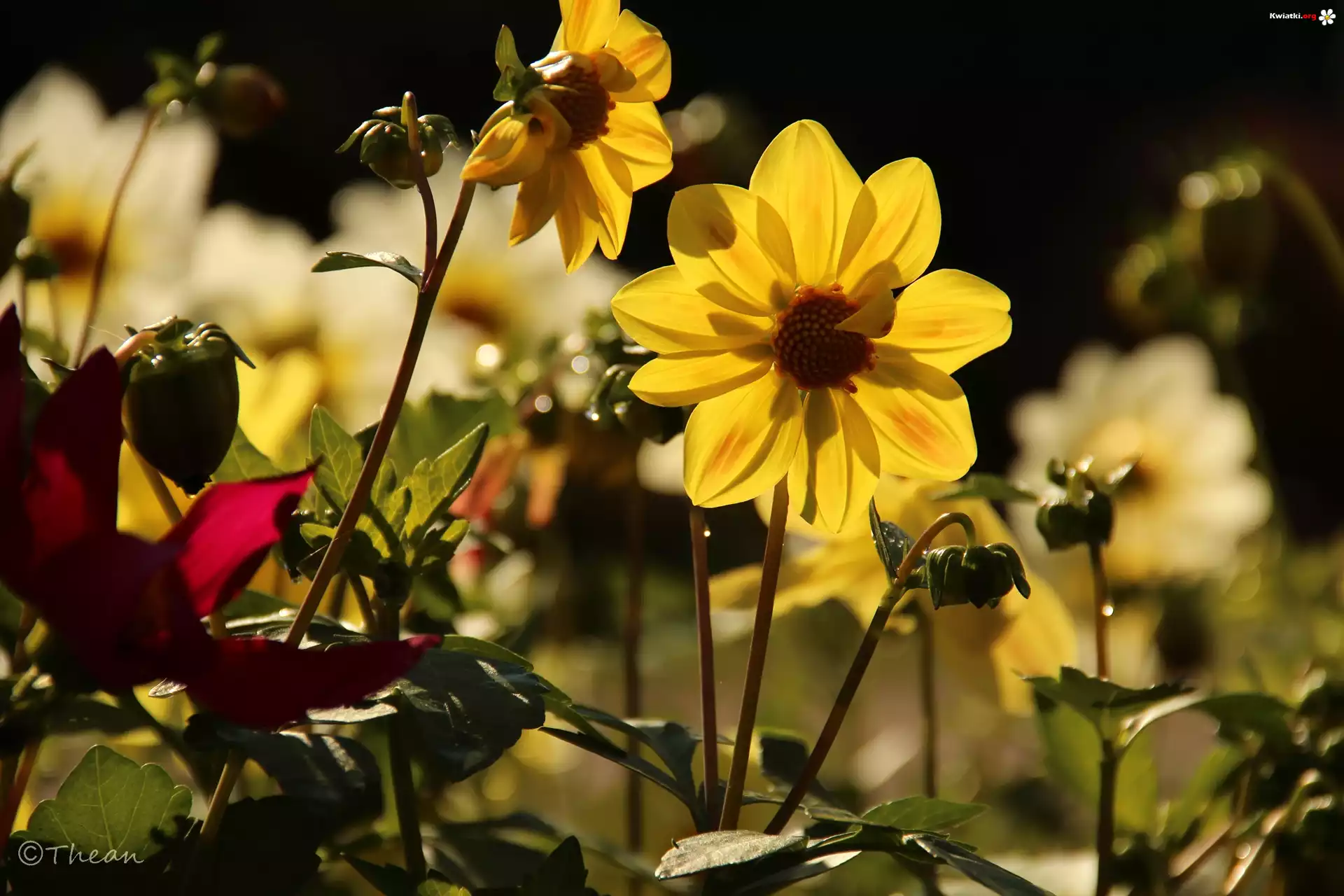 Żółte, Dalie, Kwiaty - Zdjęcia