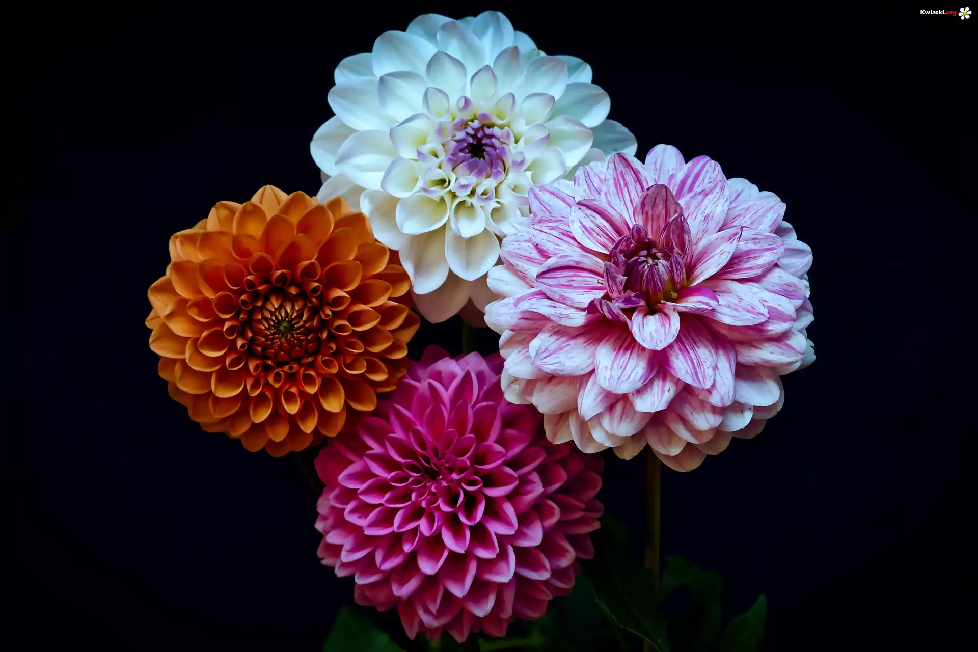 Kwiat Cztery, Kolorowe, Kwiaty, Dalie, Ciemne, Tło