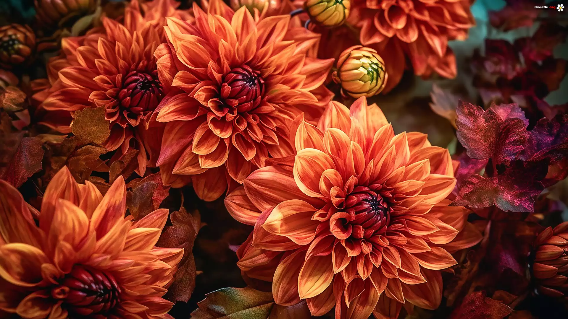 Kwiaty, Dalie, Zbliżenie, Grafika komputerowa - Zdjęcia