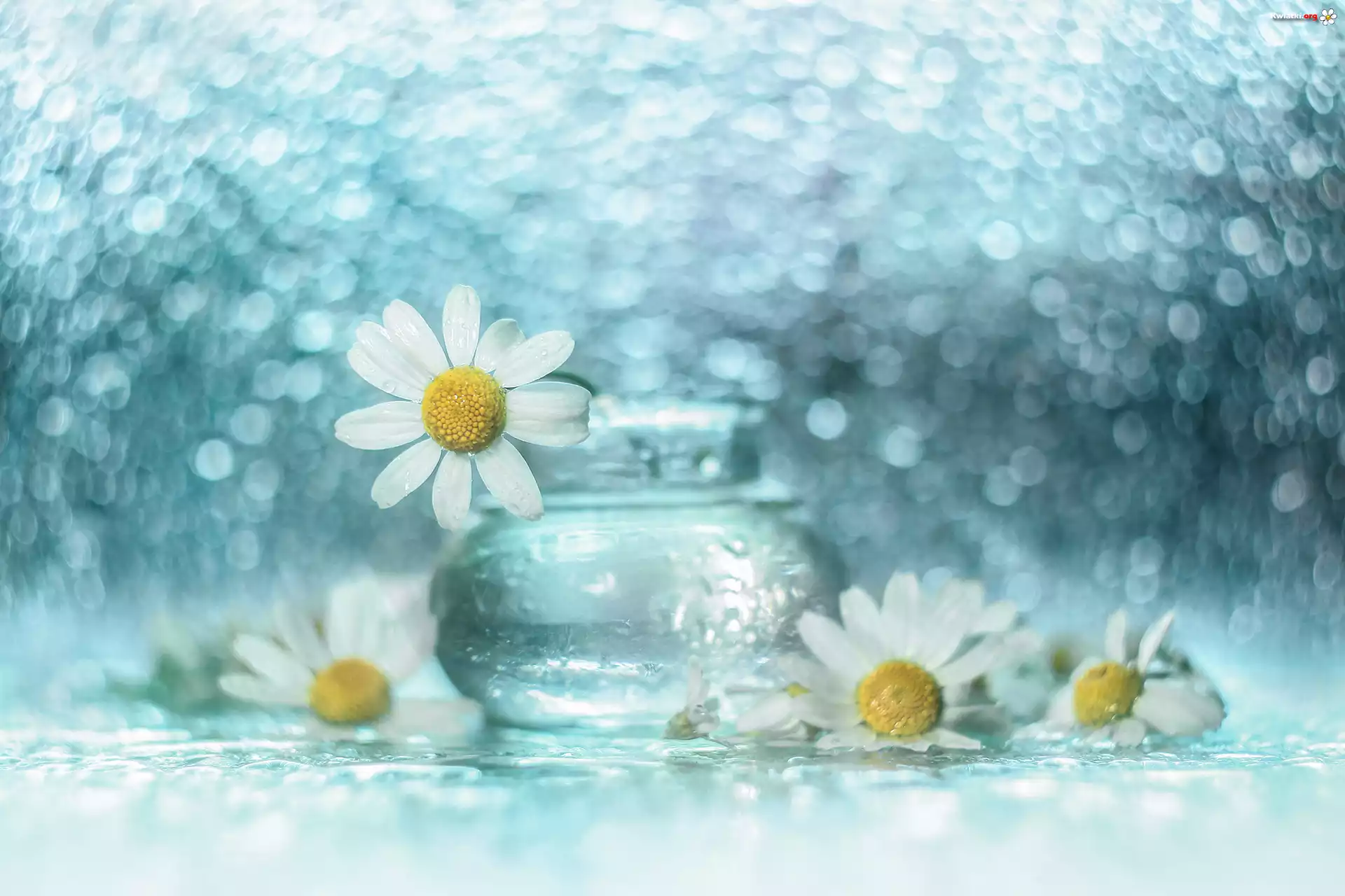 Dekoracja, Rumianek, Białe, Kwiaty, Bokeh, Wazonik - Zdjęcia
