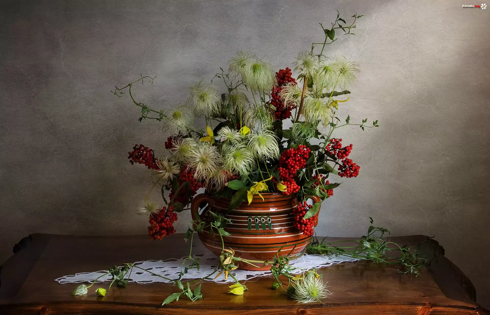 Dekoracja, Bukiet, Rośliny, Wazon, Serwetka - Zdjęcia