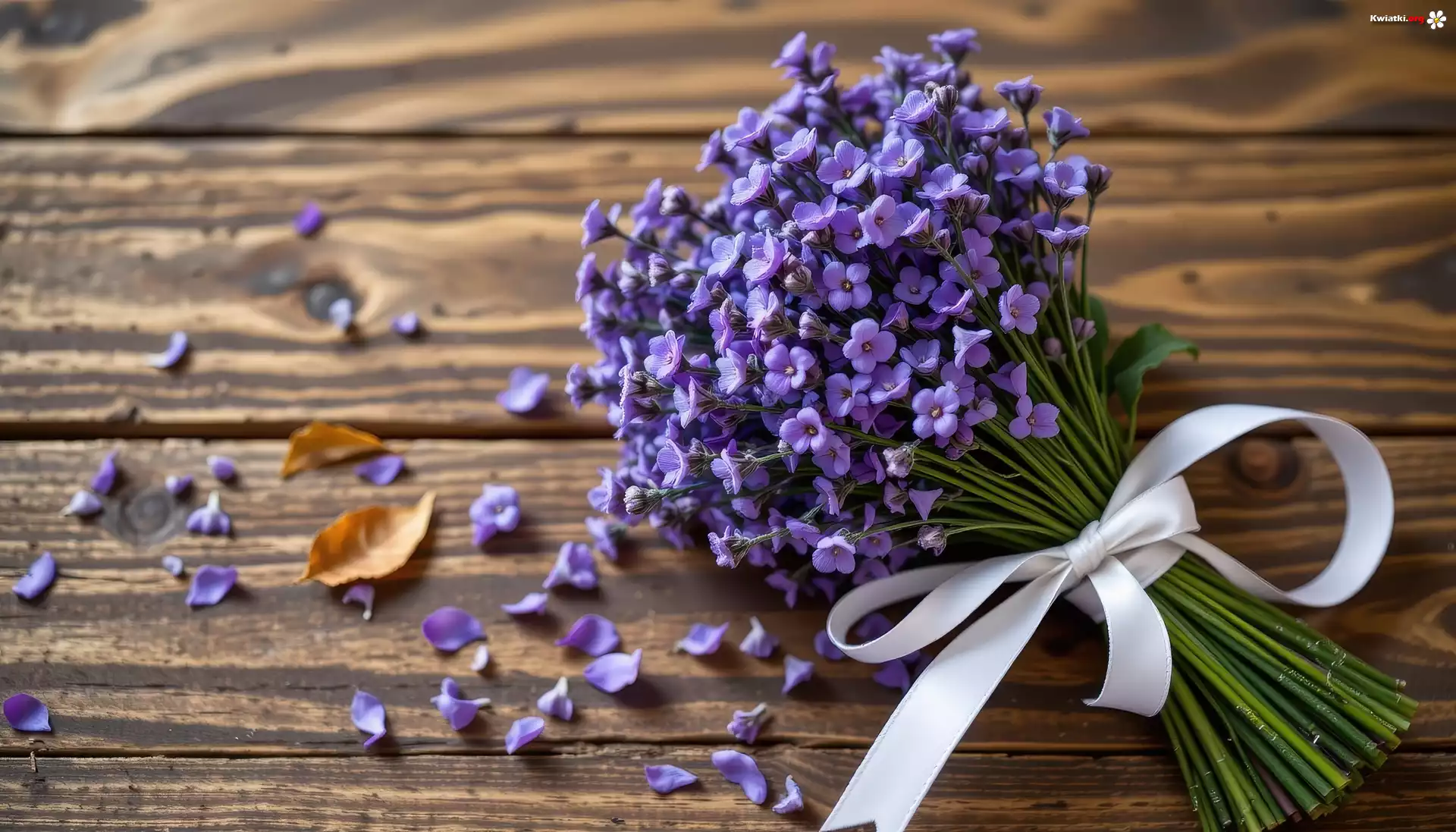Kwiat Lawenda, Wiązanka, Wstążka, Deski, Grafika, AI