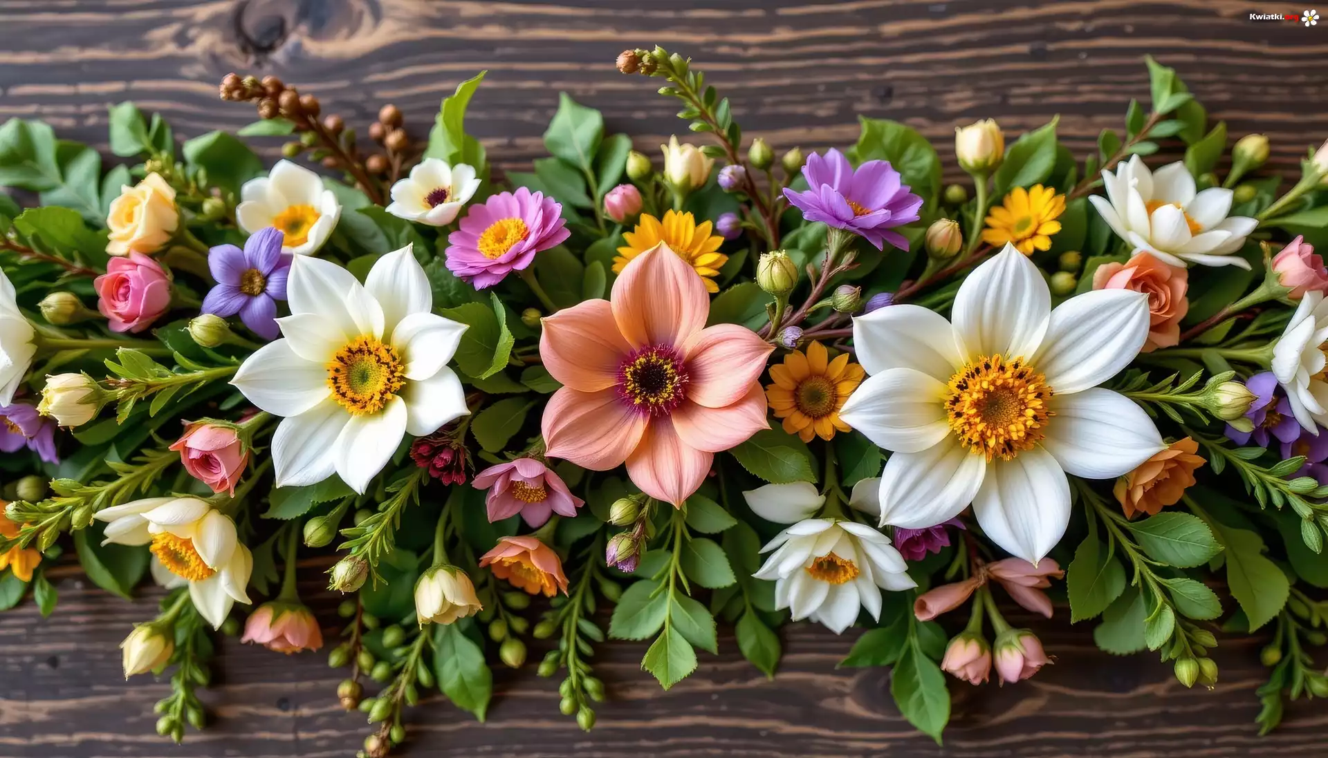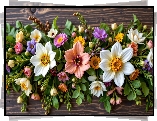 Kolorowe, Kwiaty, Listki, Deski - Zdjęcia