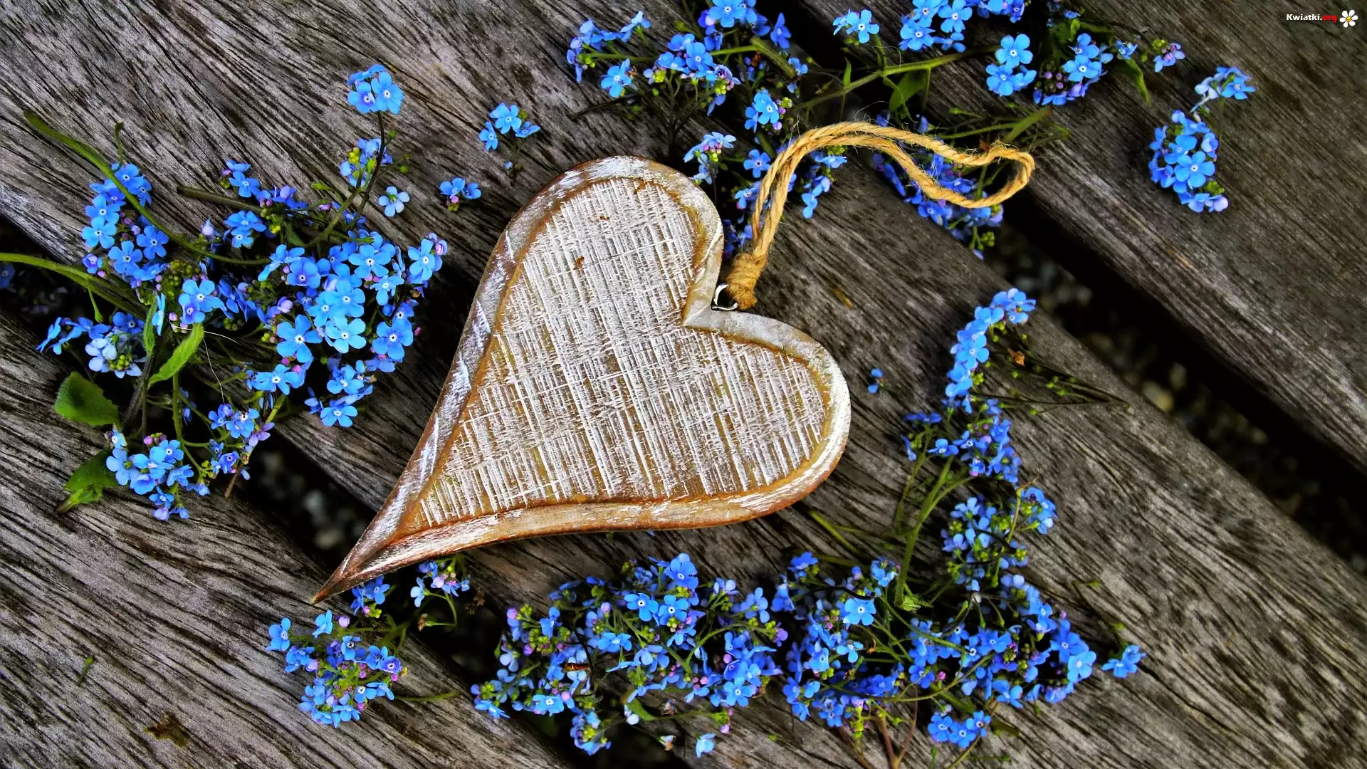 Deski, Drewniane, Serce, Kwiaty, Brunera - Zdjęcia