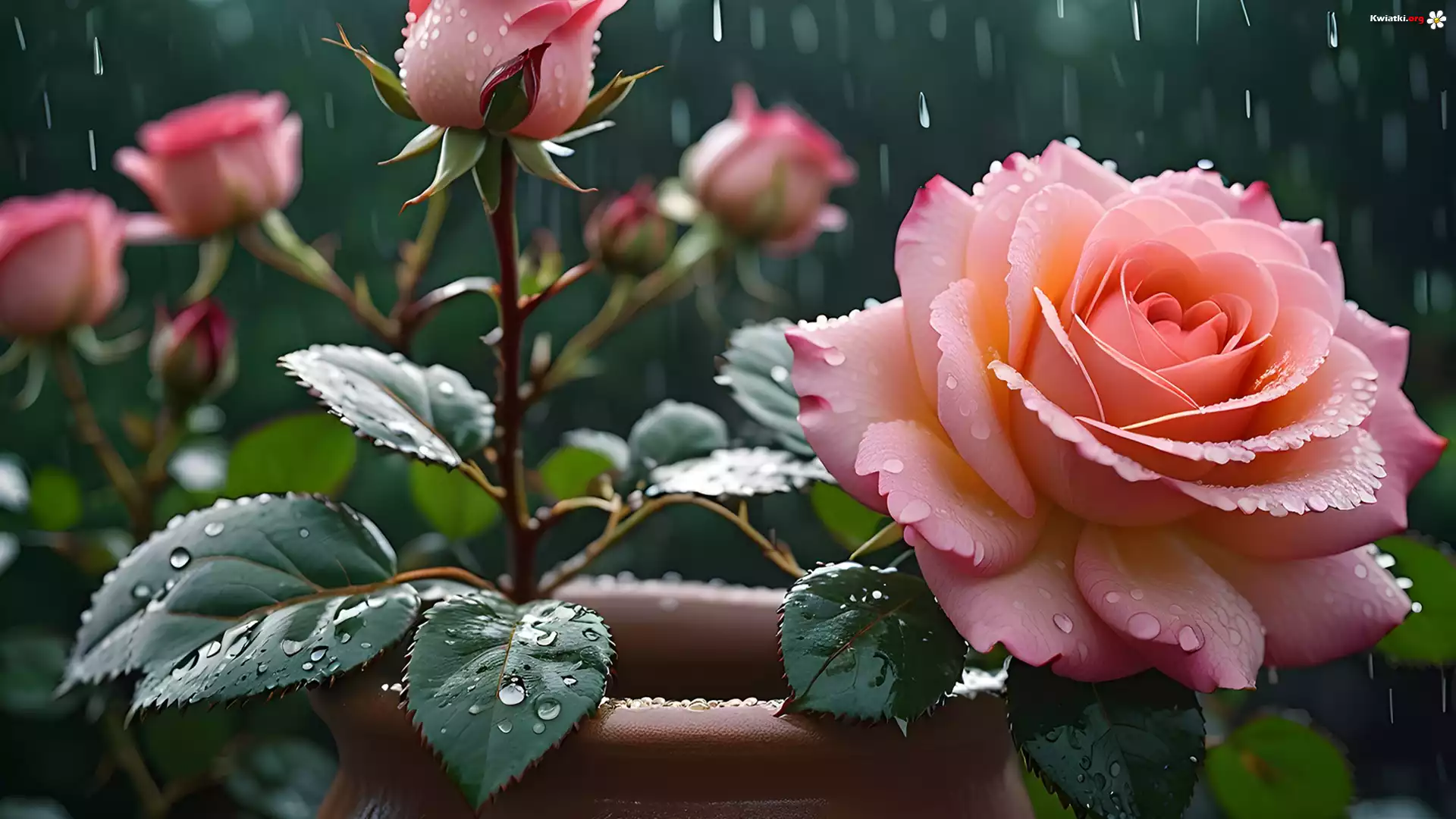 Kwiat Kwiat, Róża, Różowa, Deszcz, Krople, Grafika
