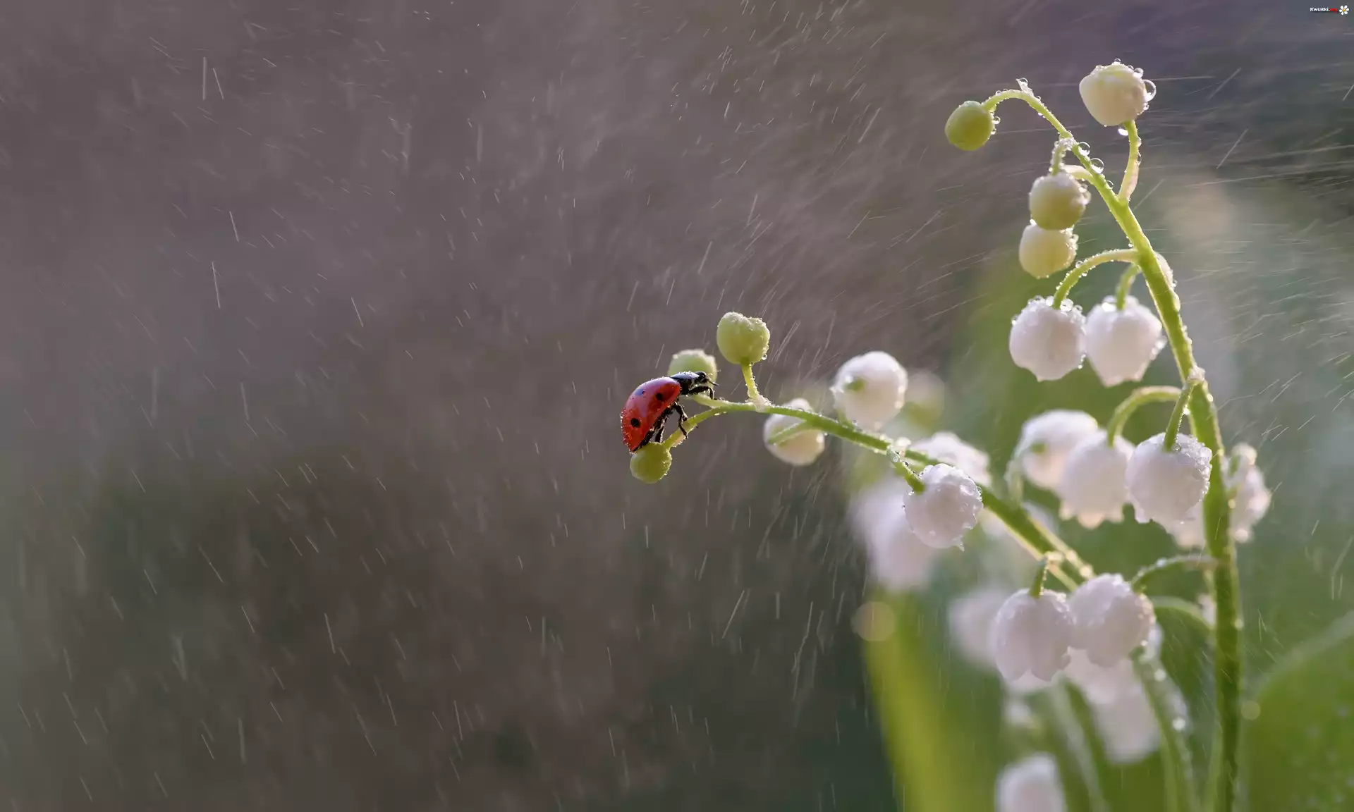 Kwiat Kwiaty, Konwalie, Biedronka, Deszcz