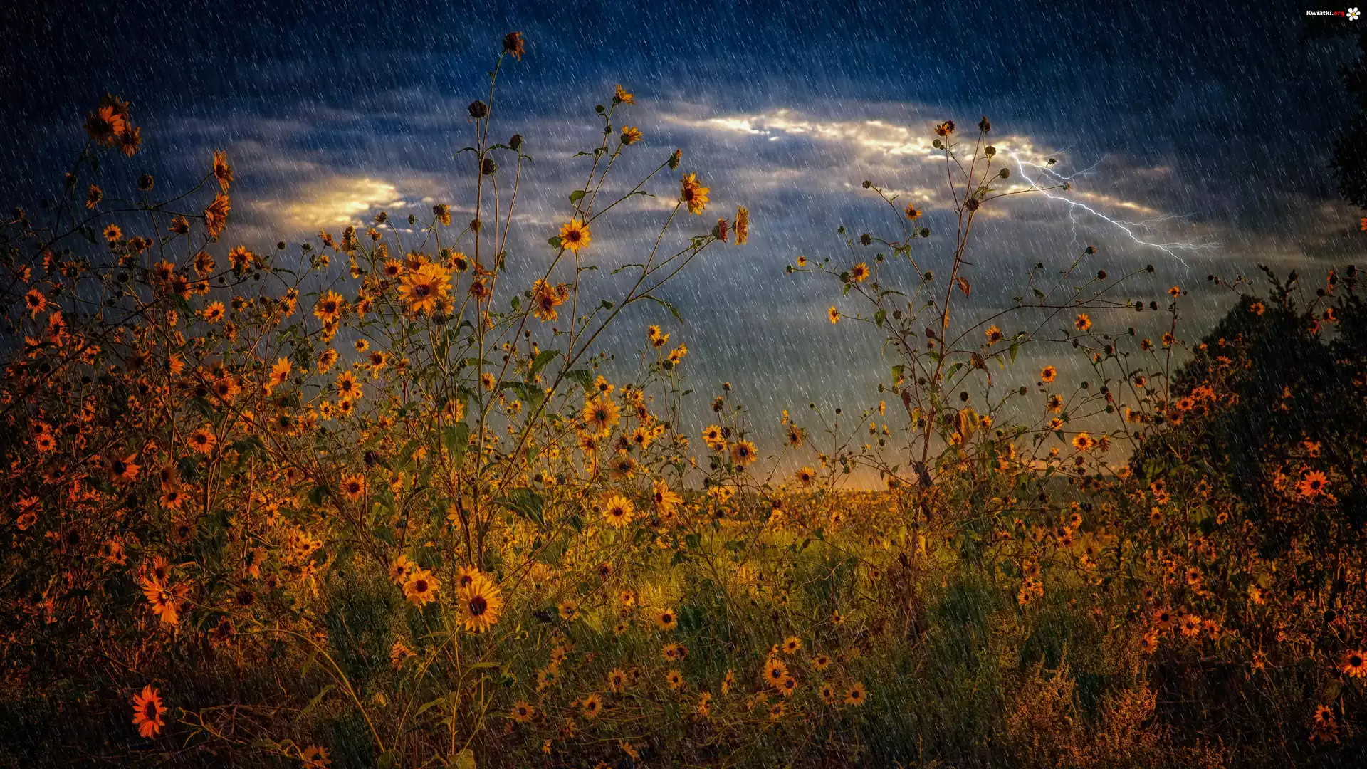 Żółte, Kwiaty, Burza, Deszcz, Pioruny - Zdjęcia