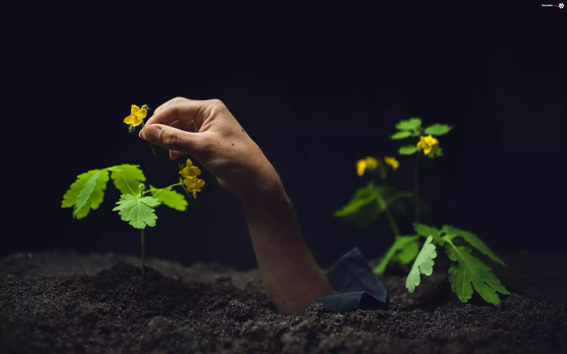 Kwiat Ręka, Dłoń, Żółte, Kwiaty, Ziemia, Czarne, Tło