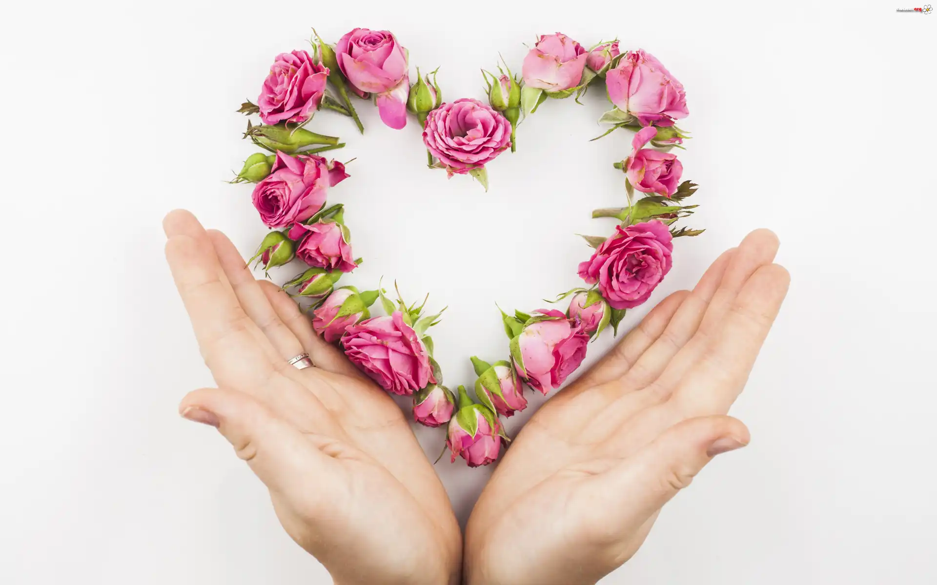 Dłonie, Kwiaty, Róże, Serce, Białe, Tło - Zdjęcia