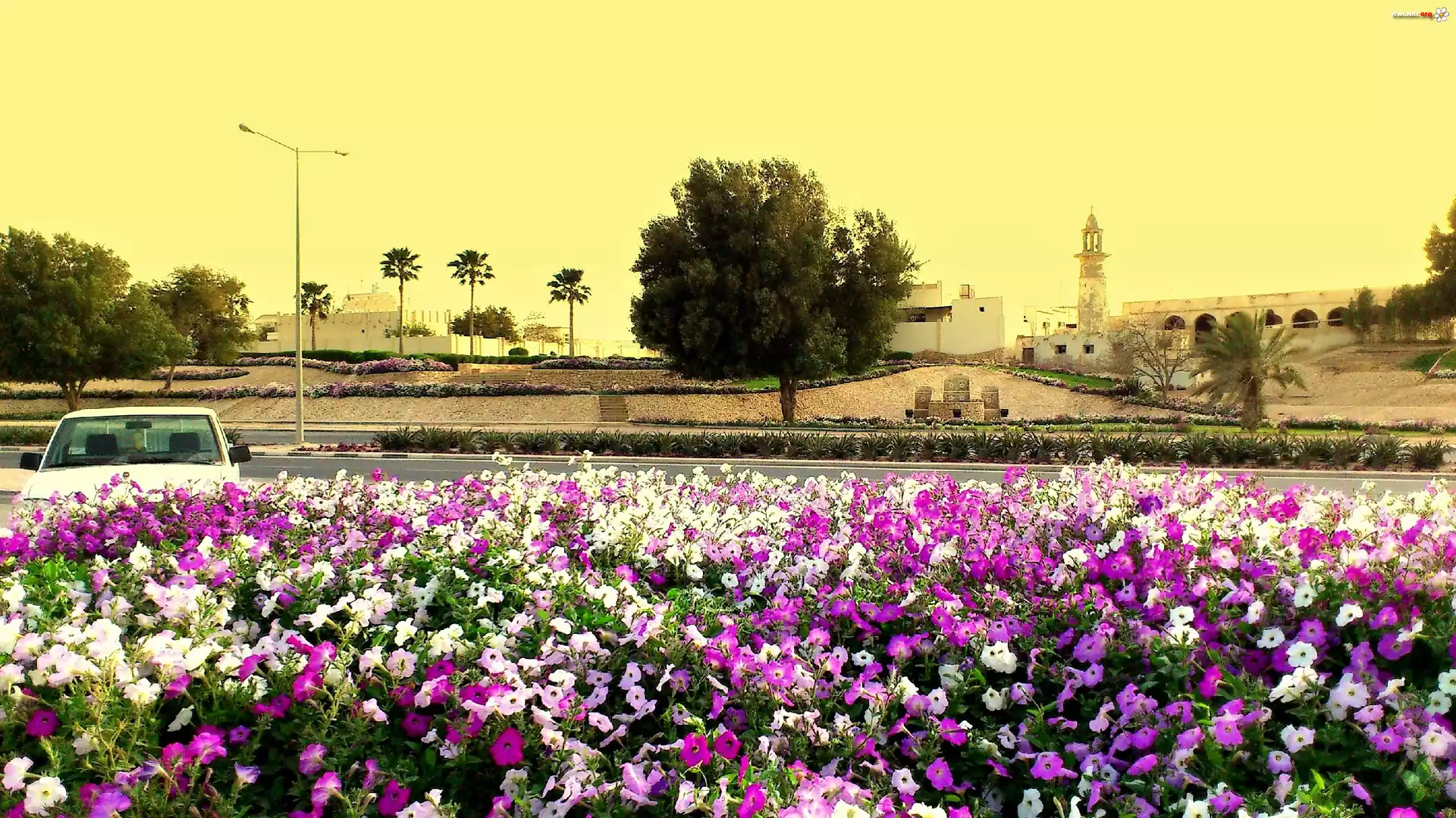 Kwiat Al-Doha, Domy, Meczet, Drzewa, Skwer, Bratki