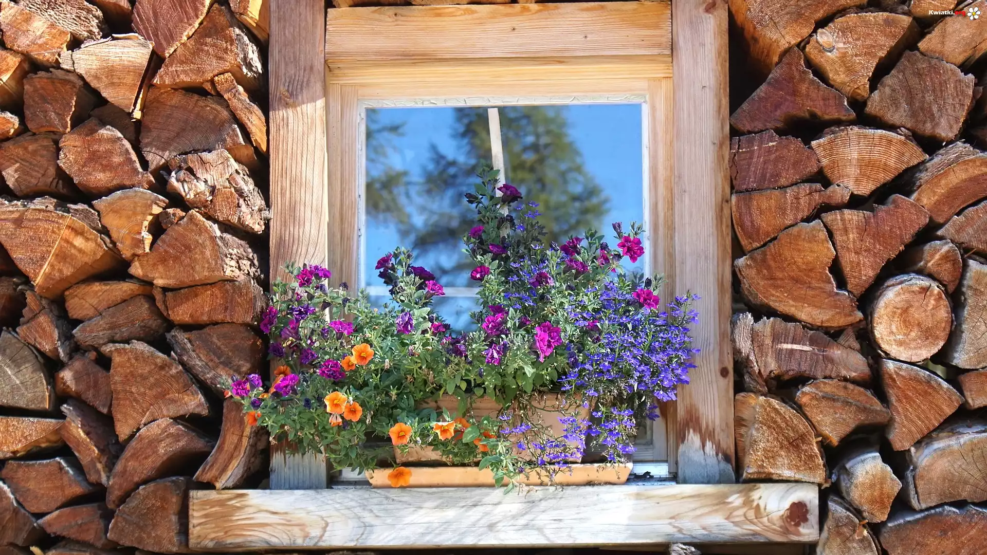 Kolorowe, Kwiaty, Doniczka, Lobelia, Petunie, Okno, Ściana, Bele, Dom - Zdjęcia