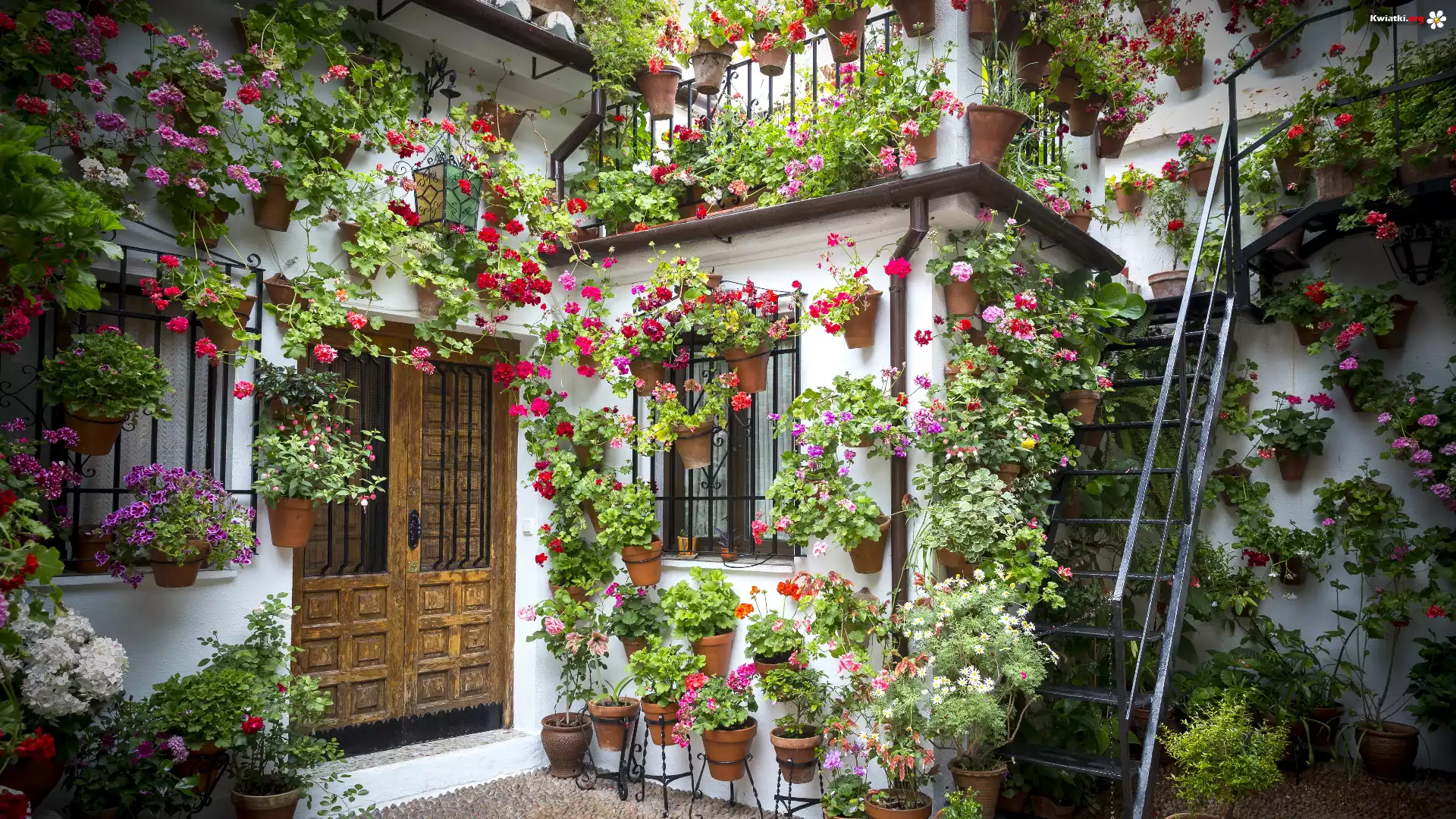 Kwiat Dom, Kwiaty, Pelargonie, Fasada, Schody