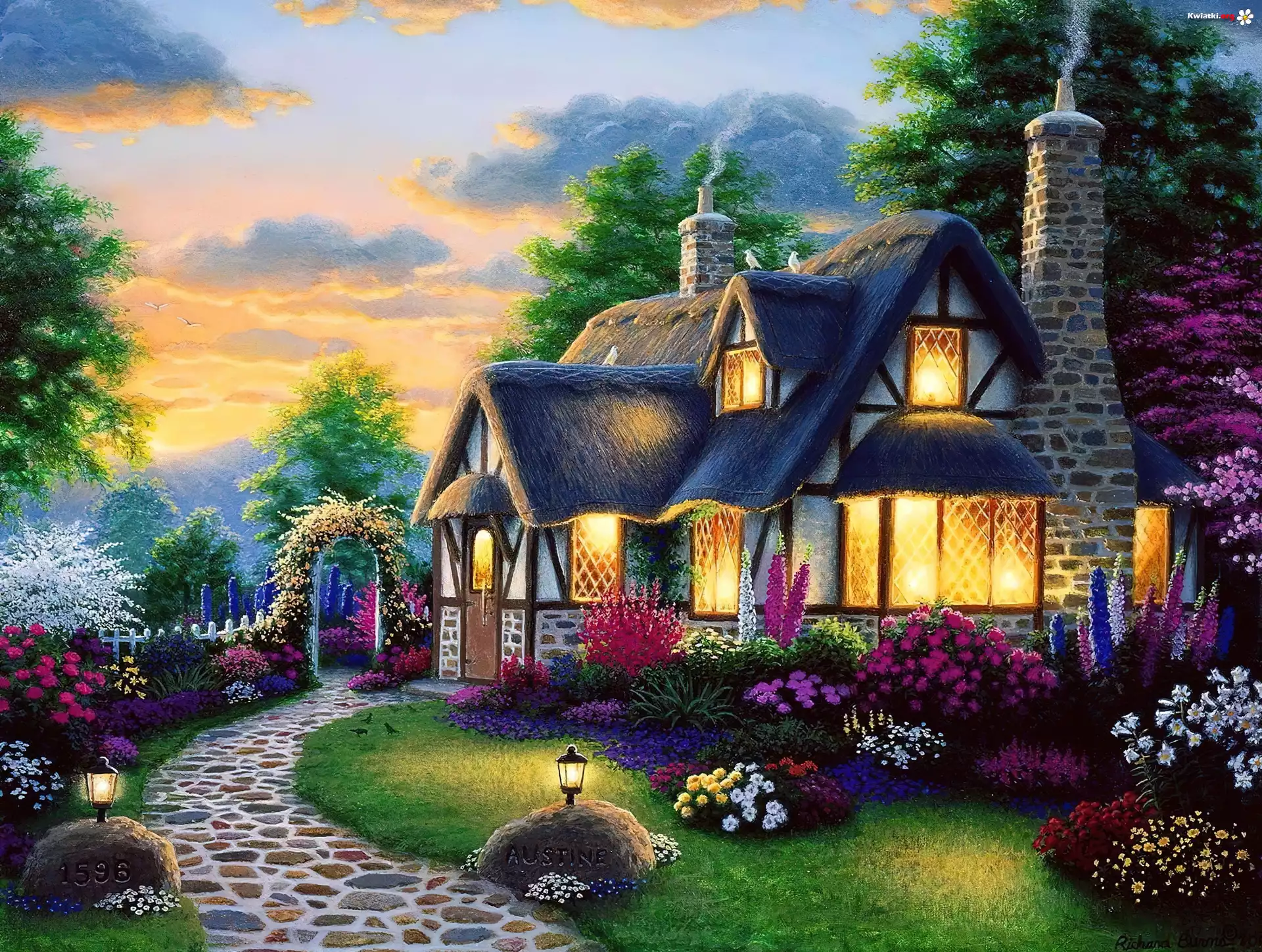 Dom, Ogród, Kwiaty, Alejka - Zdjęcia