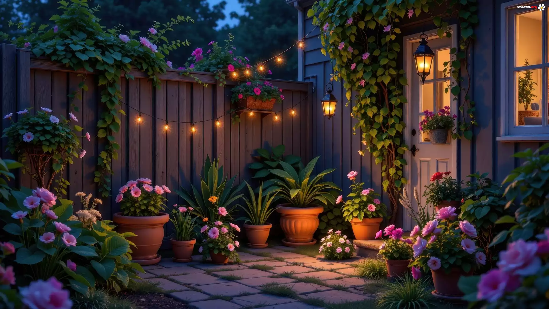 Ogródek, Dom, Kwiaty, Oświetlenie, Ogrodzenie - Zdjęcia