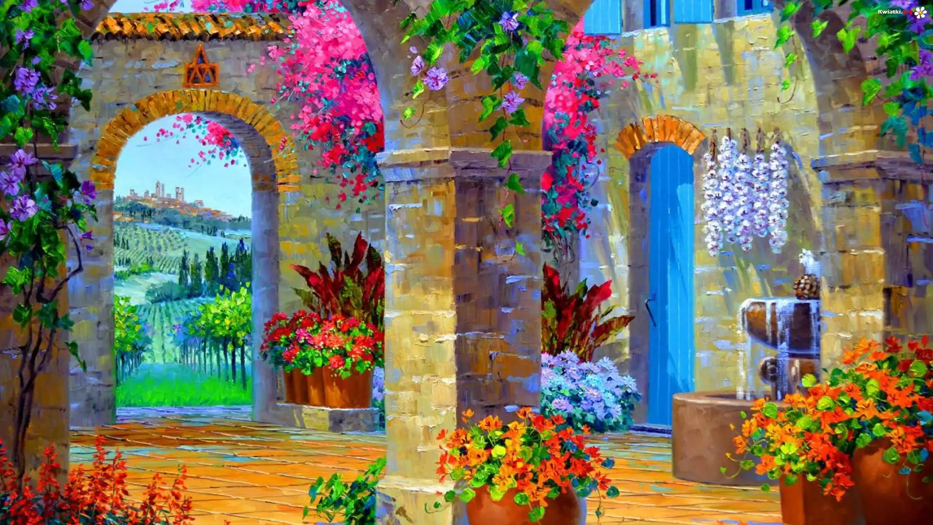 Kwiat Dom, Tarasy, Patio, Kwiaty, Łuki