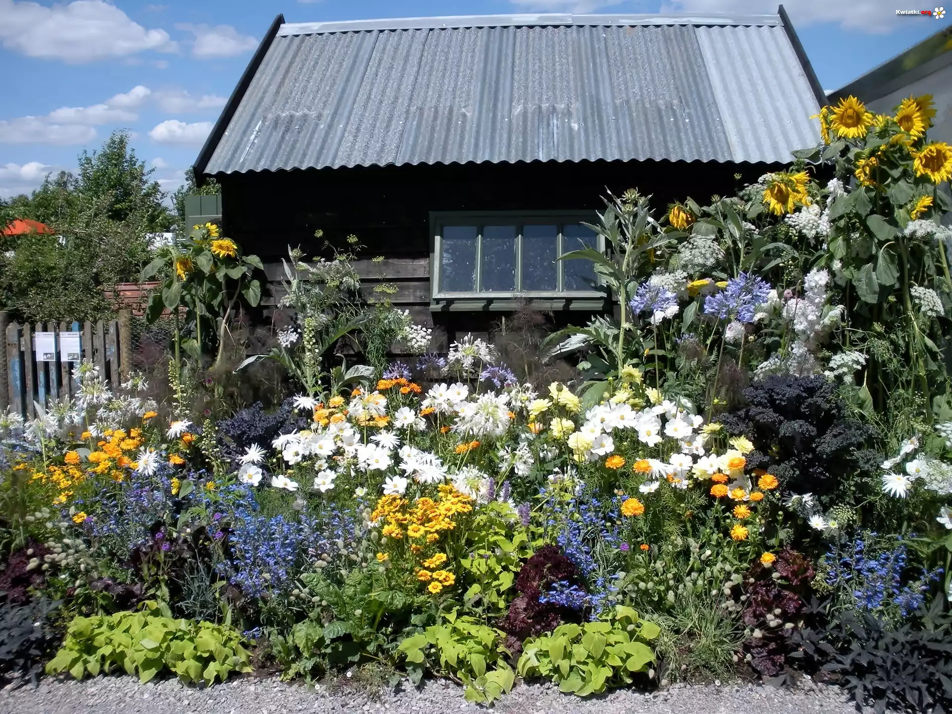 Domek, Ogródek, Kwiatowy, Słoneczniki - Zdjęcia