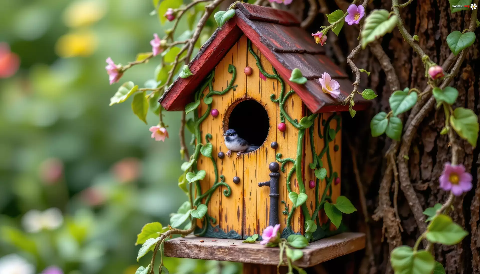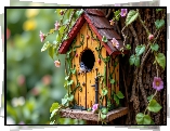 Budka, Domek, Ptaszek, Pnące, Kwiaty - Zdjęcia