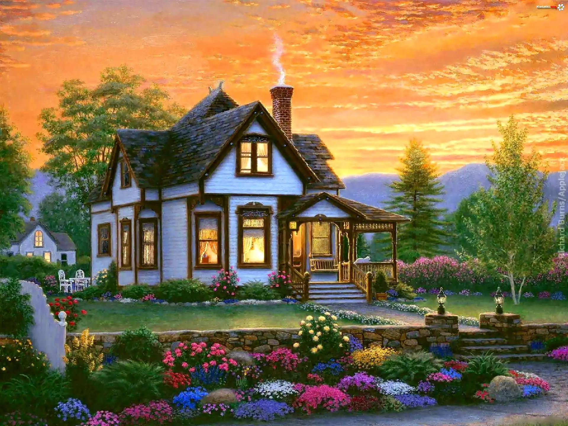 Domy, Ogród, Murek, Kwiaty - Zdjęcia