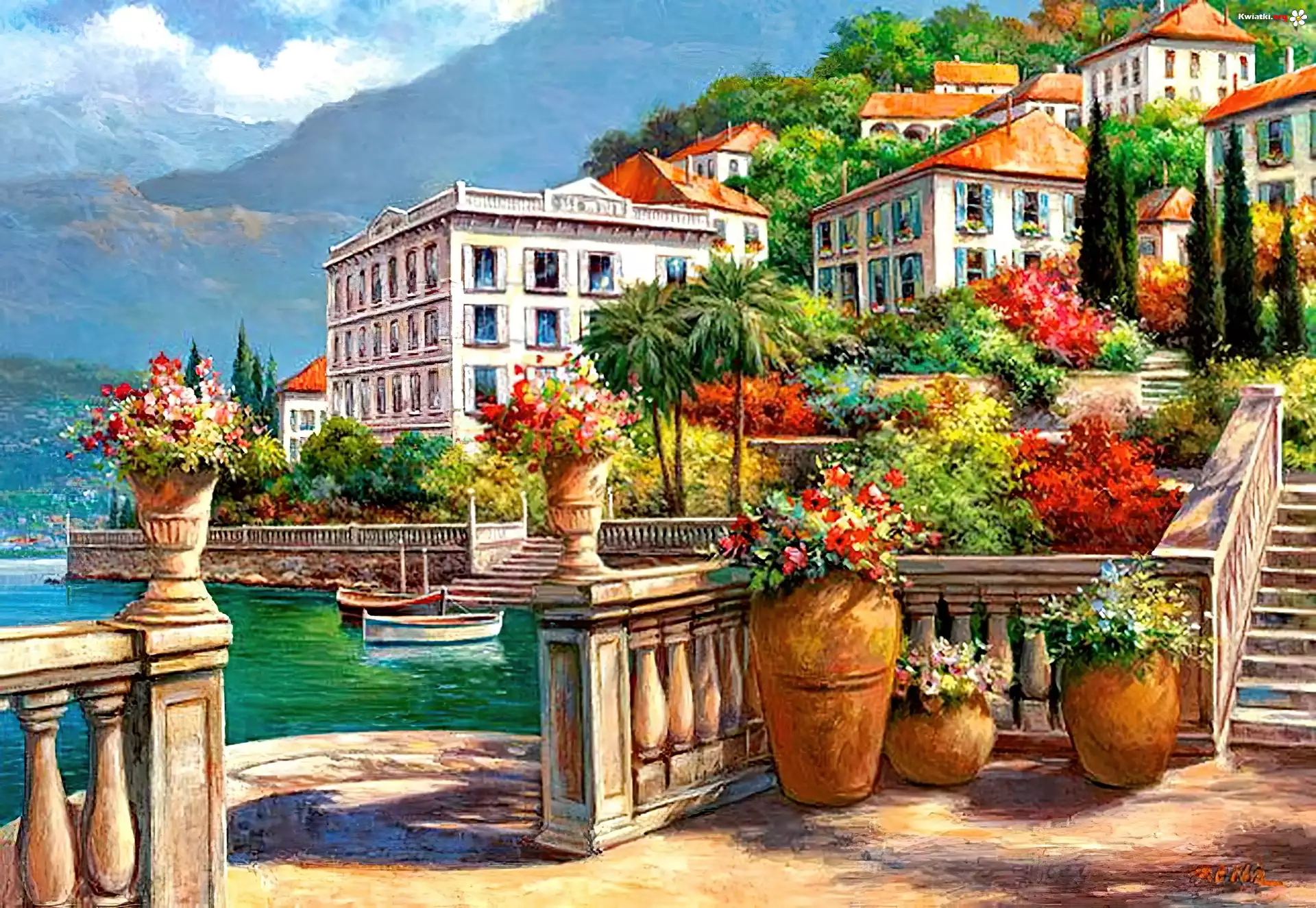Domy, Morze, Taras, Kwiaty - Zdjęcia