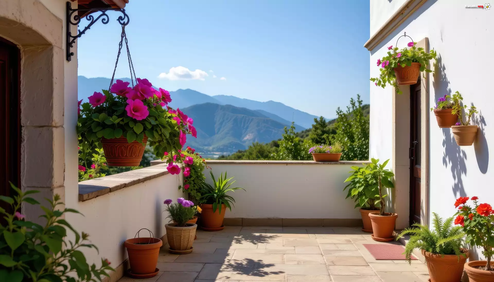 Kwiaty, Doniczki, Dom, Taras, Góry - Zdjęcia