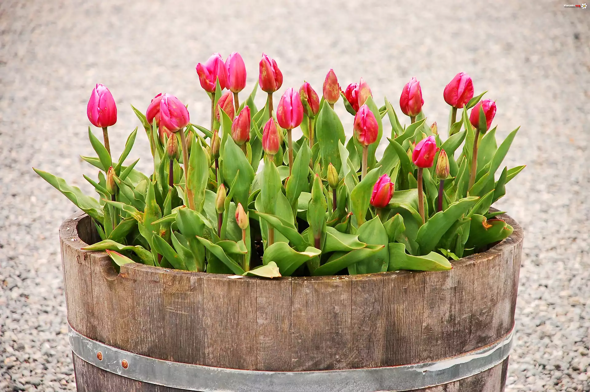 Tulipany, Drewniana, Donica - Zdjęcia