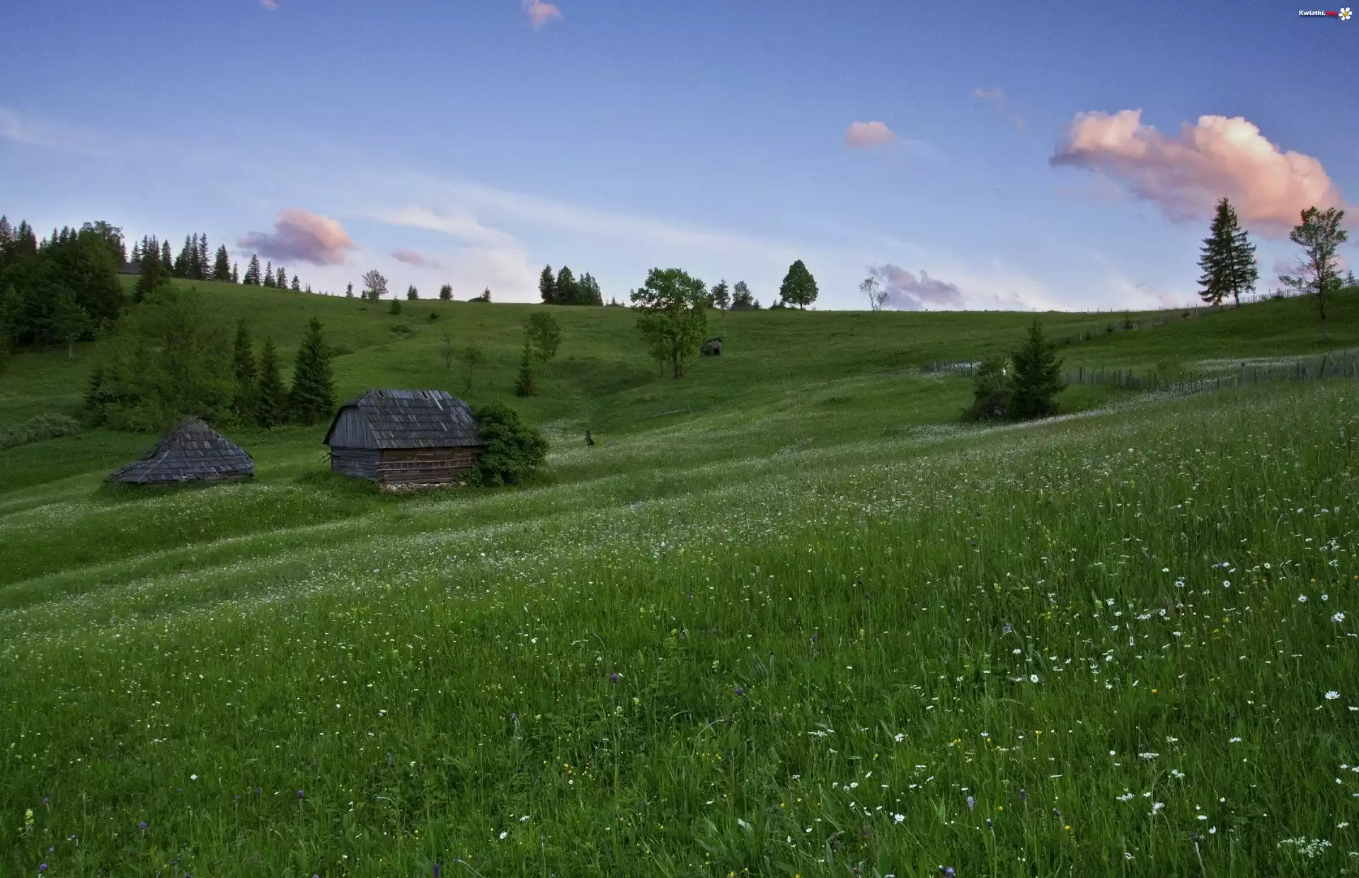 Kwiat Łąka, Kwiatki, Szopy, Drzewa, Wiosna