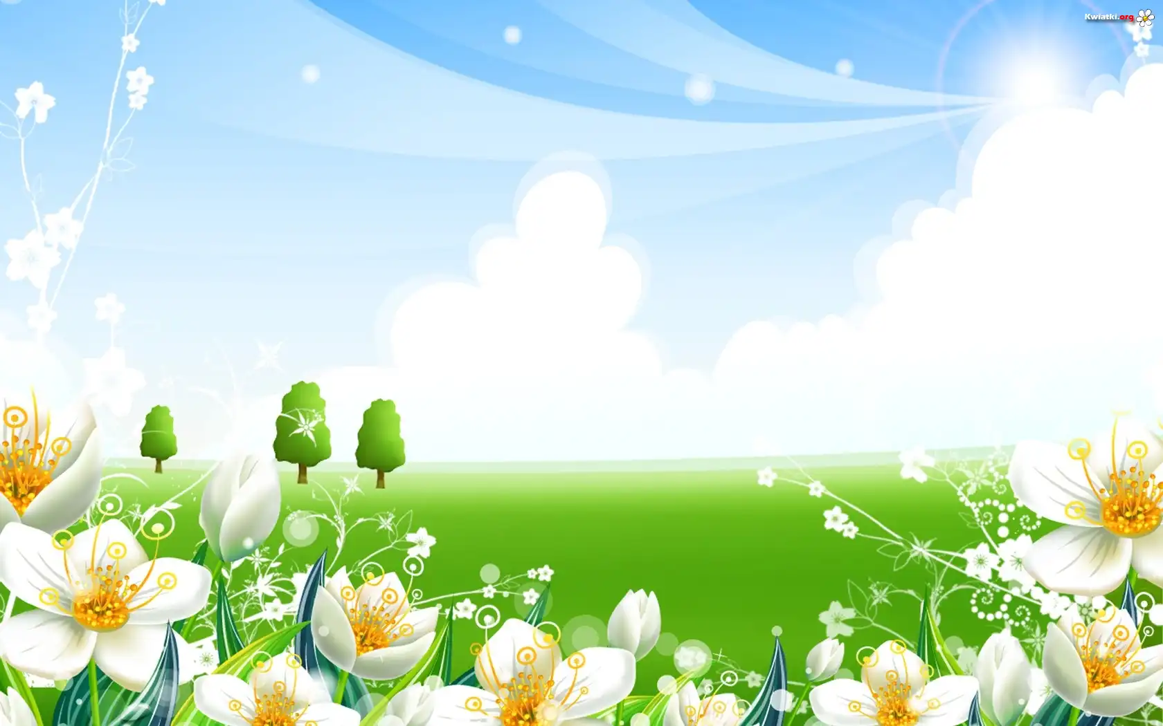 Kwiat Kwiaty, Drzewa, Trawa