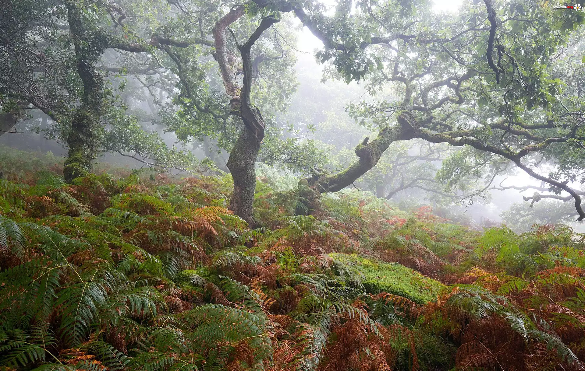 Kwiat Drzewa, Mgła, Paprocie, Las