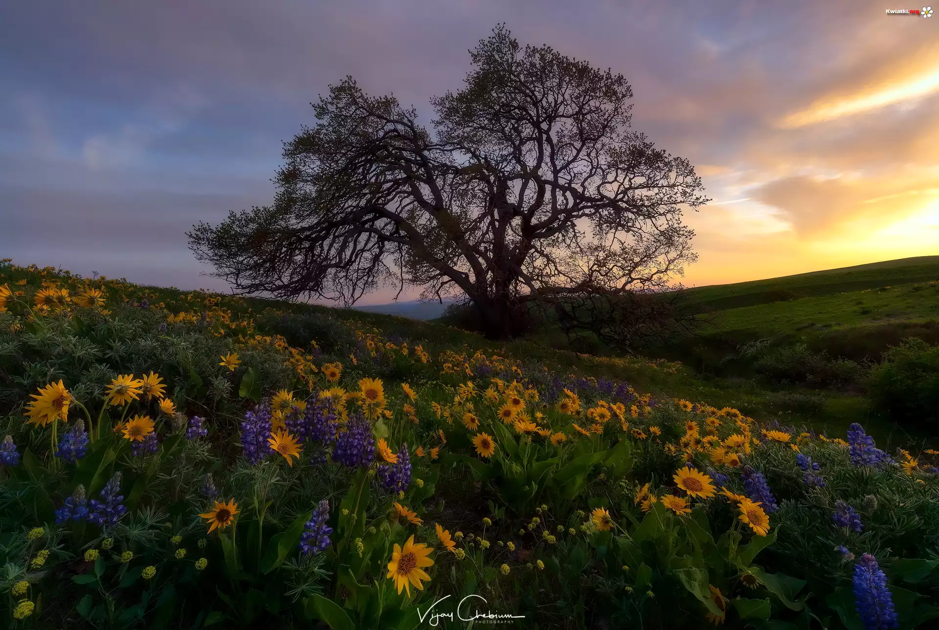 Drzewo, Żółte, Kwiaty, Łubin, Park stanowy, Columbia Hills Historical, Stan Waszyngton, Stany Zjednoczone - Zdjęcia |