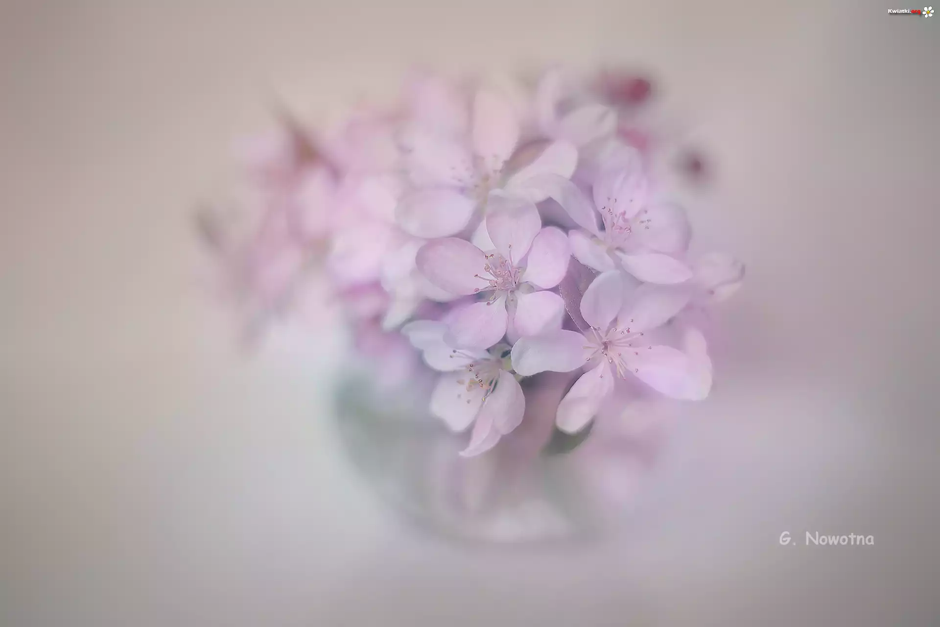 Różowe, Kwiaty, Jabłoń, Drzewo owocowe, Wazonik - Zdjęcia