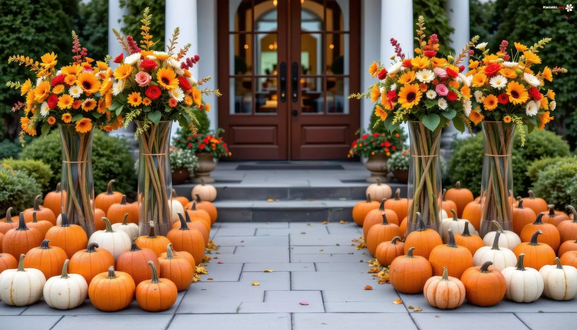 Dynie, Kwiaty, Wazony, Drzwi - Zdjęcia
