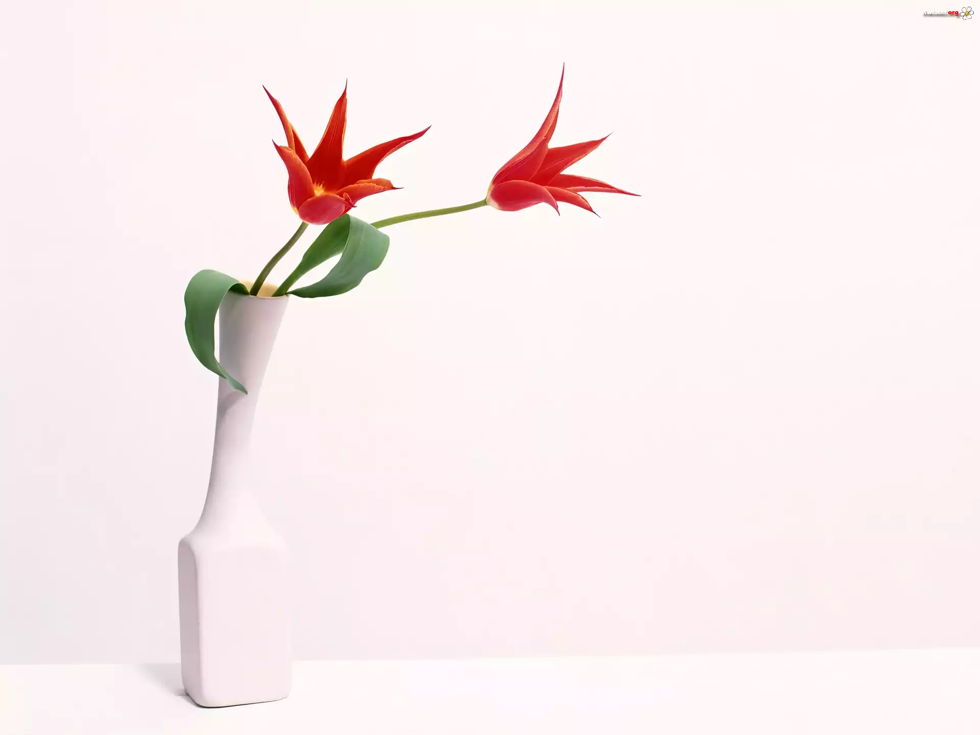 Dwa, Tulipany, Biały, Wazonik - Zdjęcia
