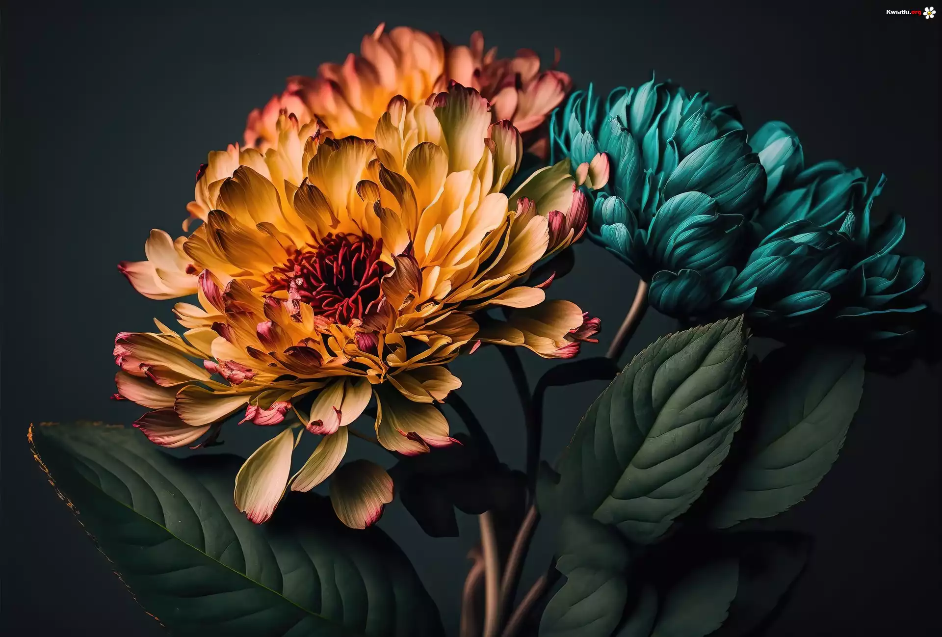 Kwiaty, Dwa, Ciemne, Tło, Grafika - Zdjęcia