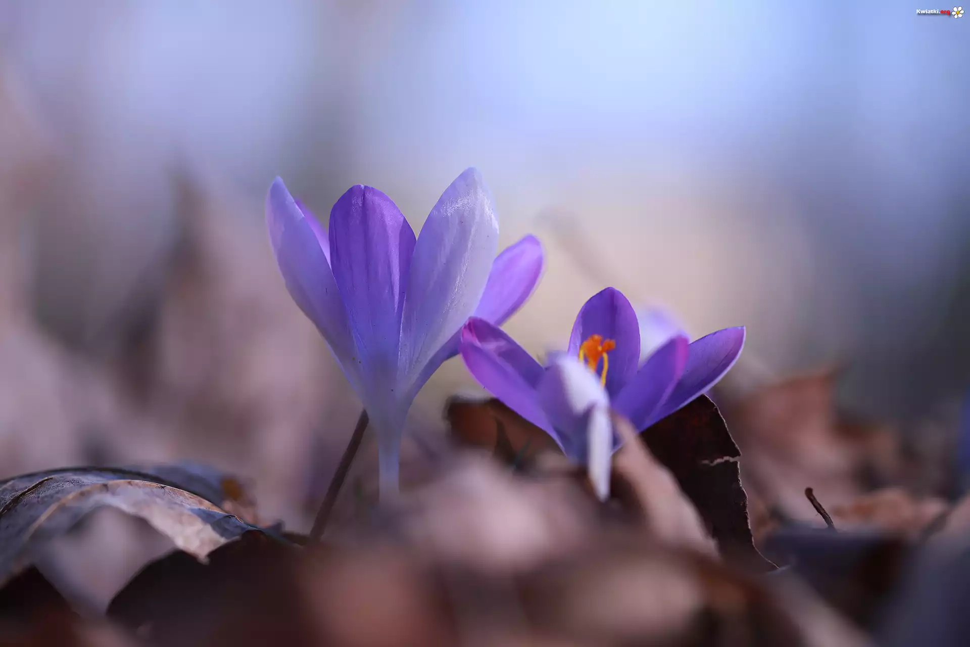 Dwa, Kwiaty, Fioletowe, Krokusy - Zdjęcia