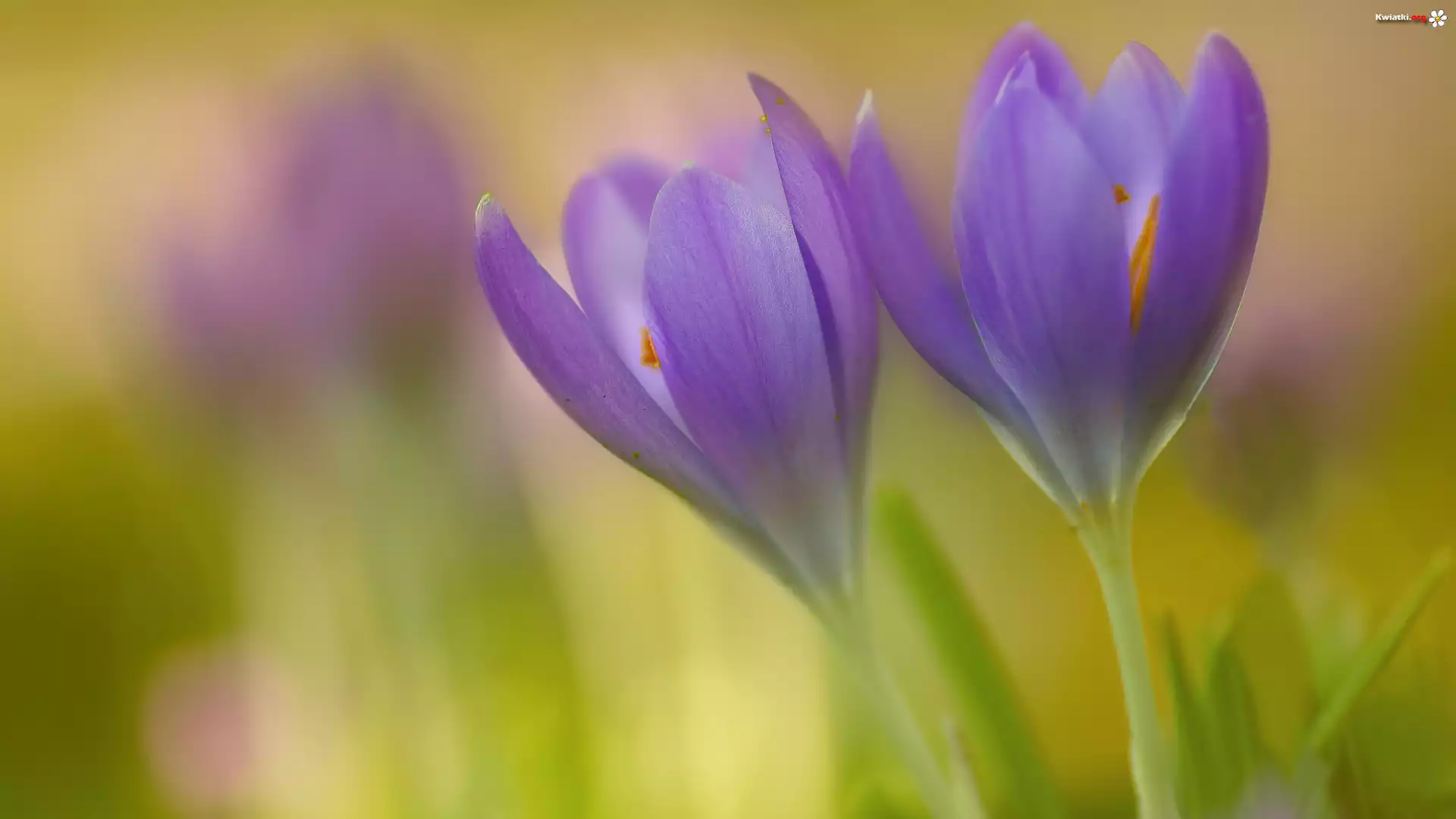 Dwa, Kwitnące, Fioletowe, Krokusy, Zbliżenie - Zdjęcia