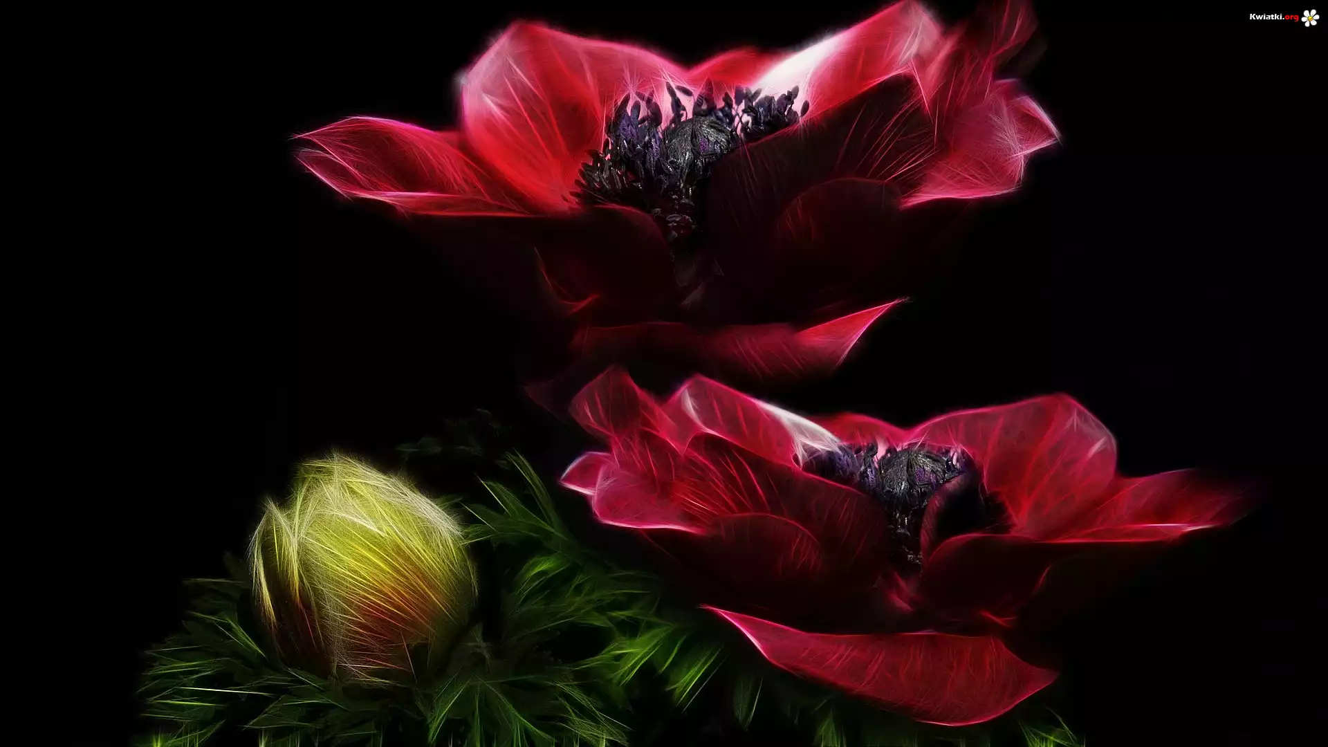 Kwiat, Dwa, Zawilce Pąk, Czarne, Tło, Fractalius - Zdjęcia