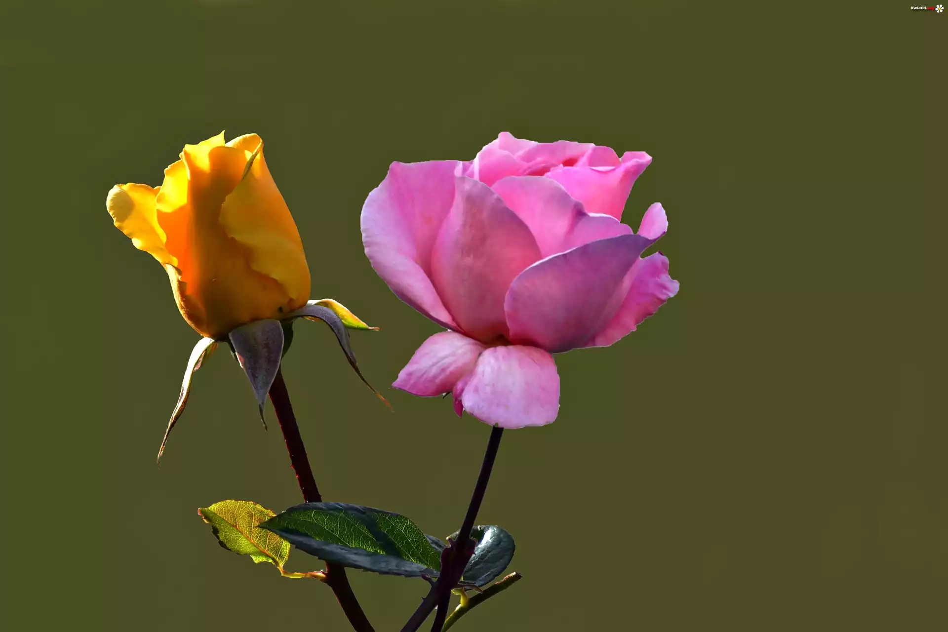 Dwie, Róże, Żółta, Różowa - Zdjęcia