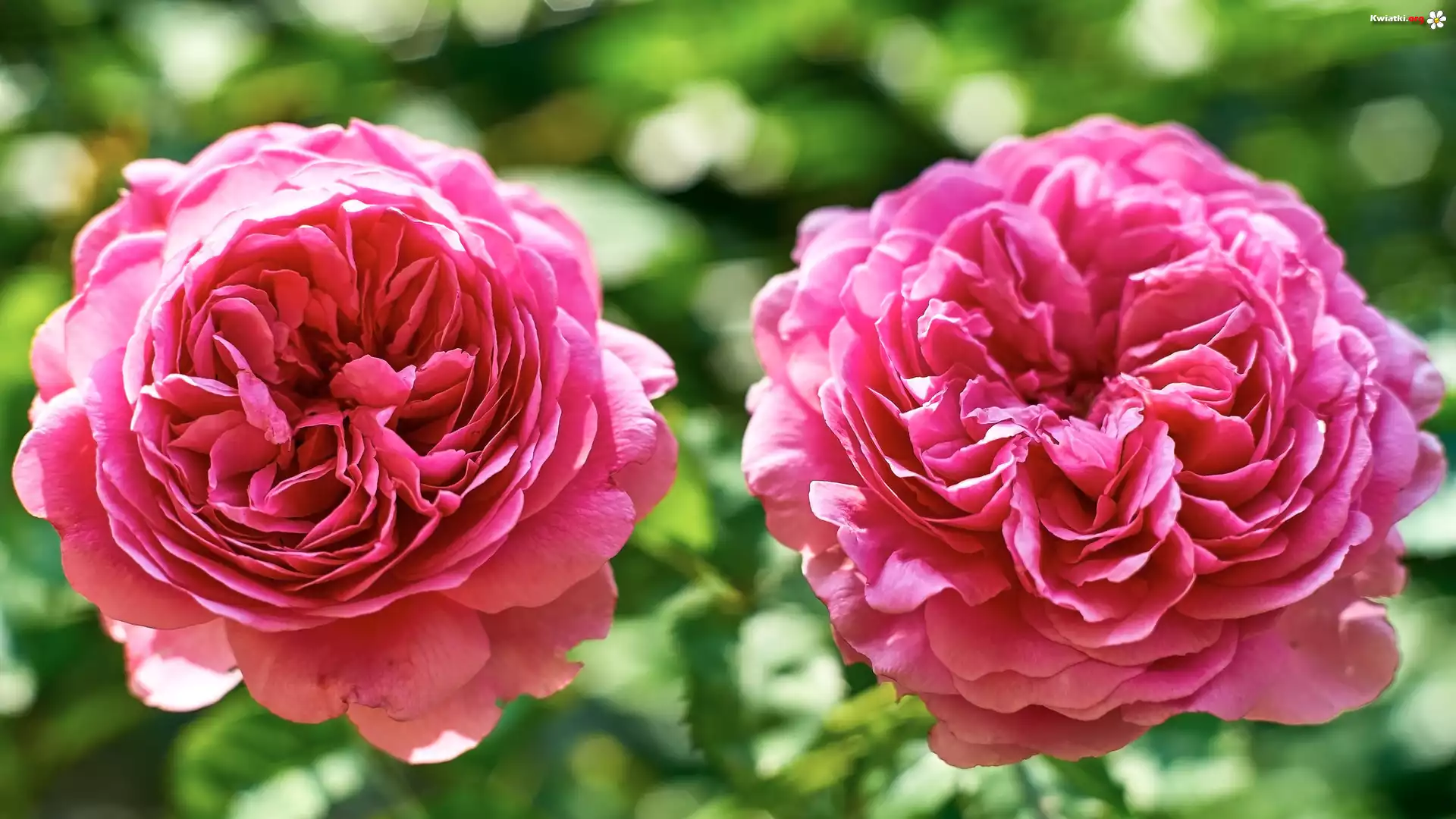 Dwie, Różowe, Róże, Zbliżenie - Zdjęcia