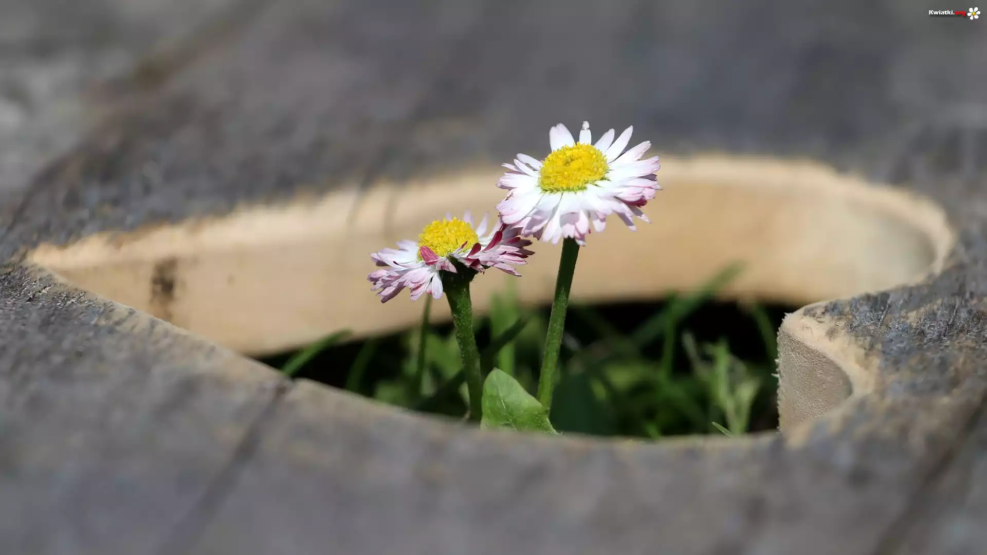 Kwiat Dwie, Stokrotki, Wycięte, Serce, Drewno
