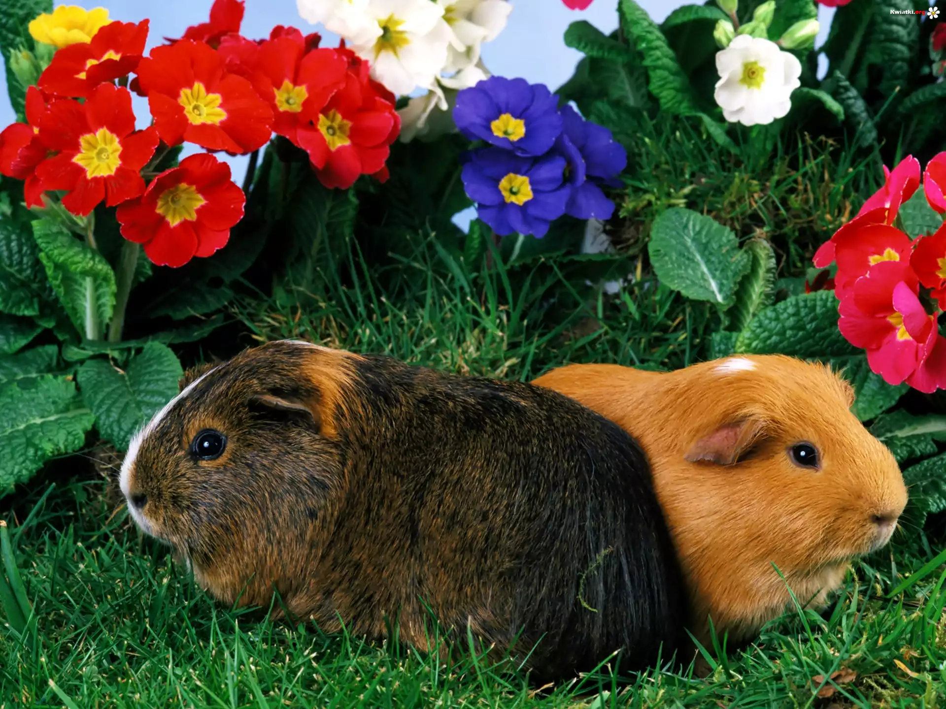 Dwie, Świnki, Trawa, Kwiaty - Zdjęcia