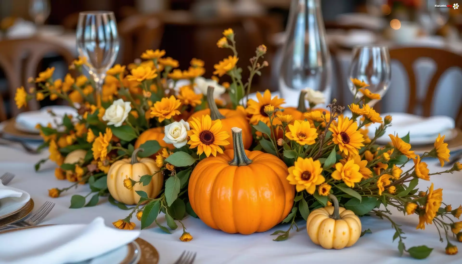 Kwiaty, Dynie, Stół, Grafika AI - Zdjęcia