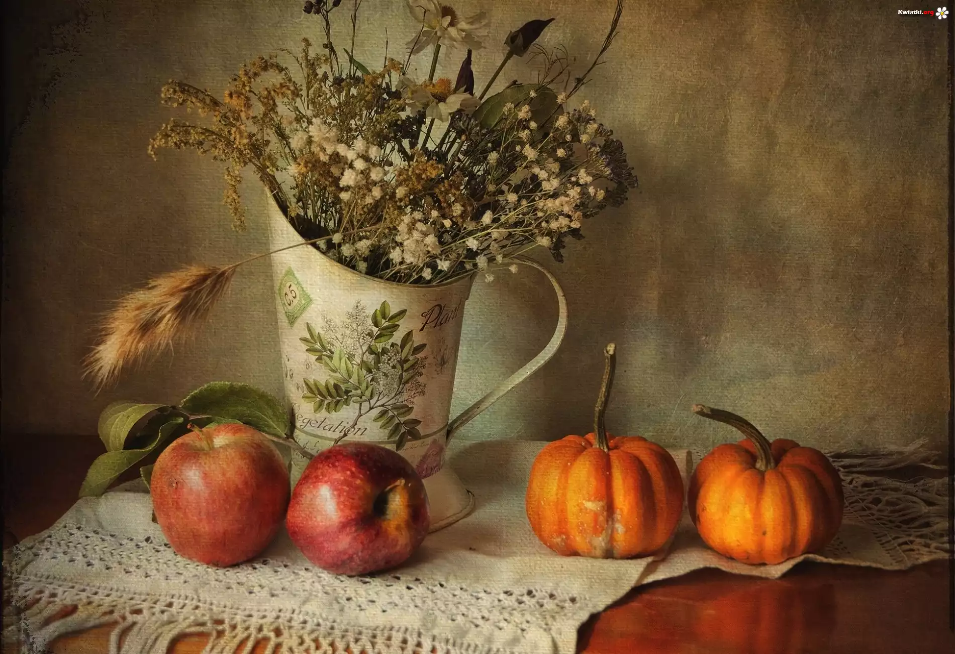 Kwiat Dzban, Suszone, Kwiaty, Jabłka, Dynie
