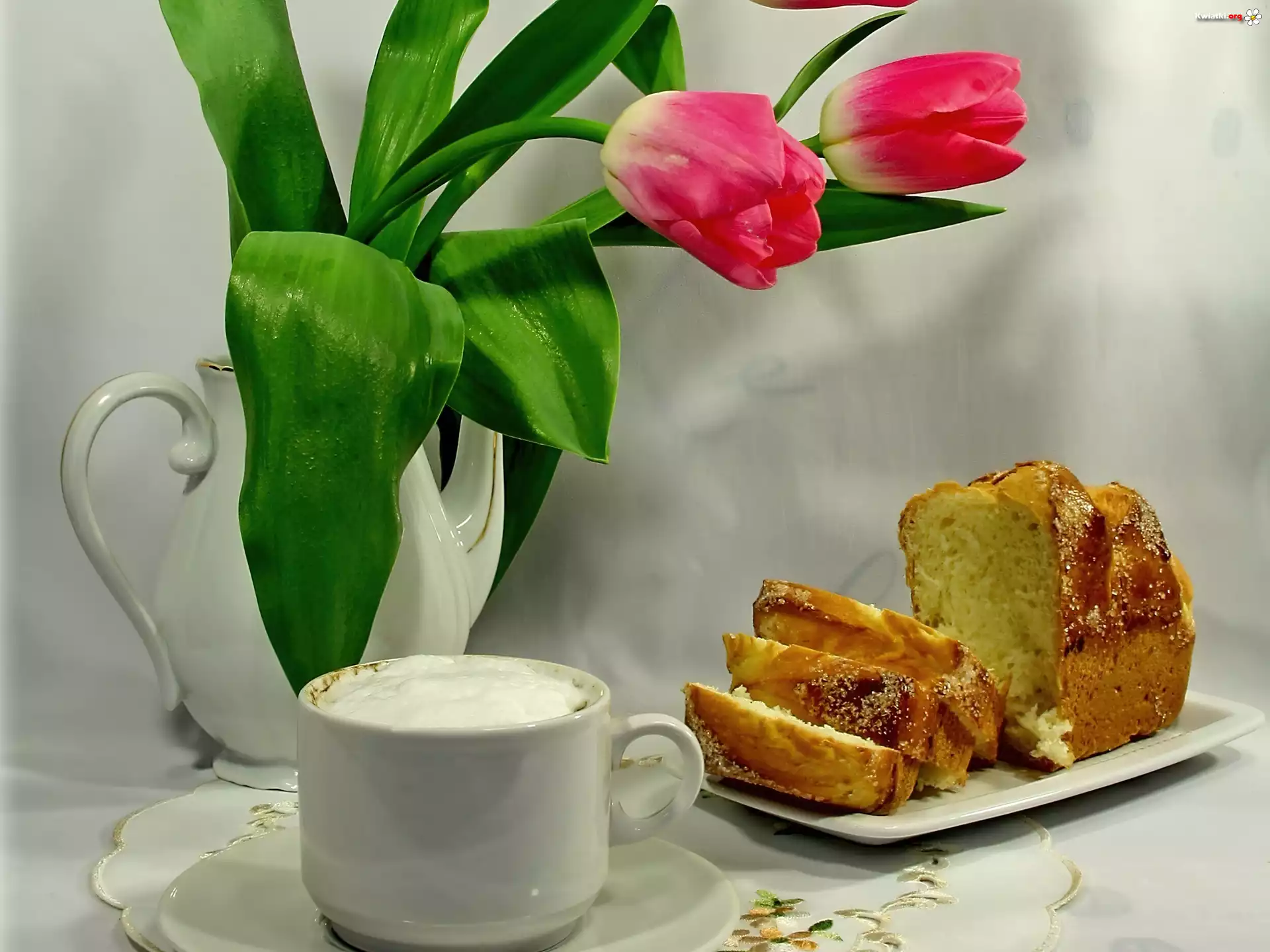 Kwiat Dzbanek, Tulipany, Ciasto, Kawusia