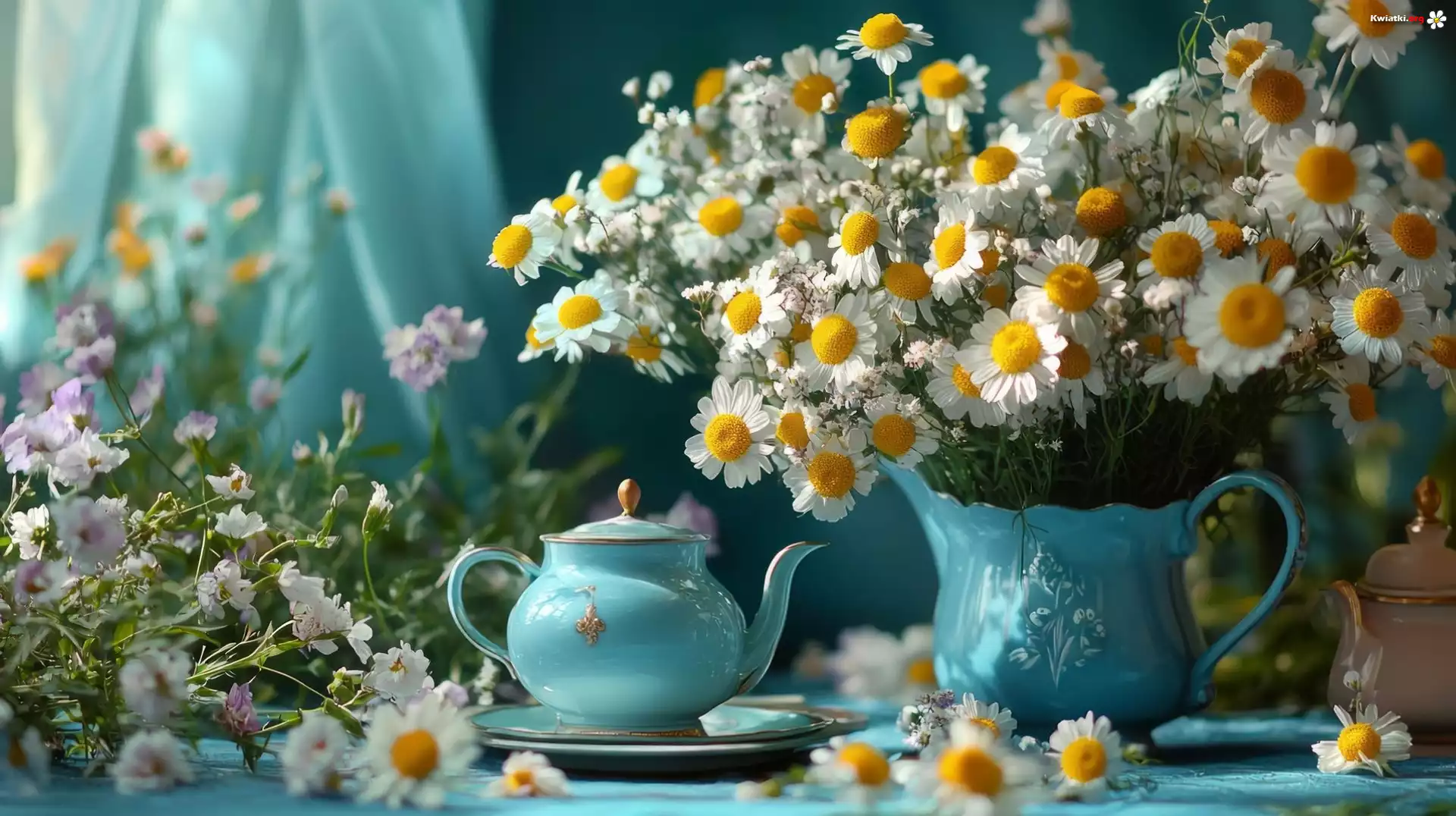 Kwiat Kwiaty, Rumianki, Bukiet, Dzbanek, Imbryk, Kompozycja