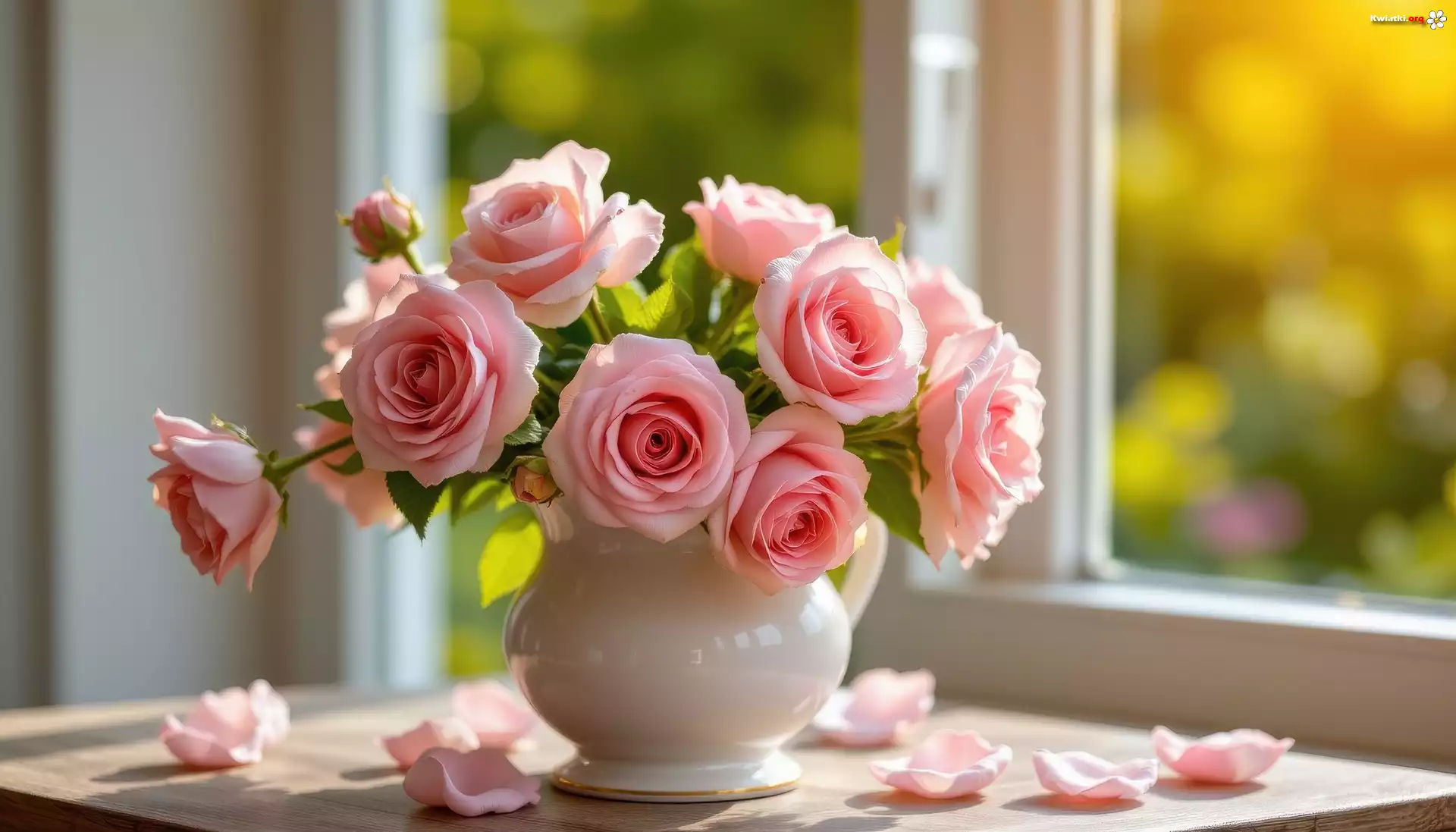 Kwiaty, Róże, Różowe, Dzbanek, Stół, Okno - Zdjęcia