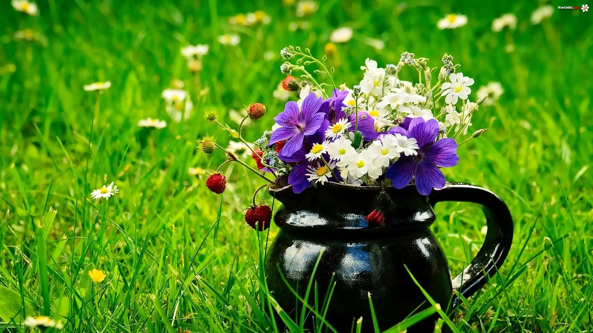Kwiat Dzbanek, Bukiecik, Polnych, Kwiatów, Poziomki, Łąka